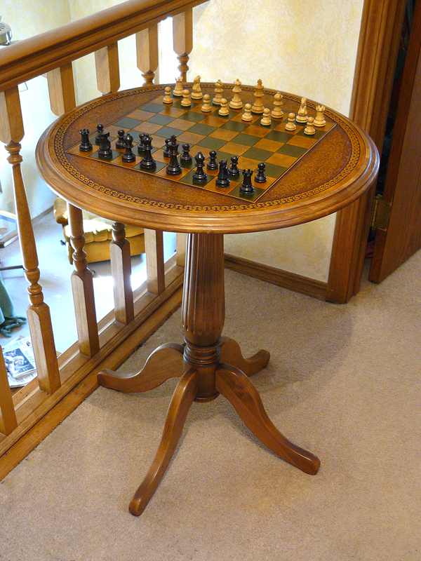 The top of this table was modified to accept a veg-tan leather inlay.