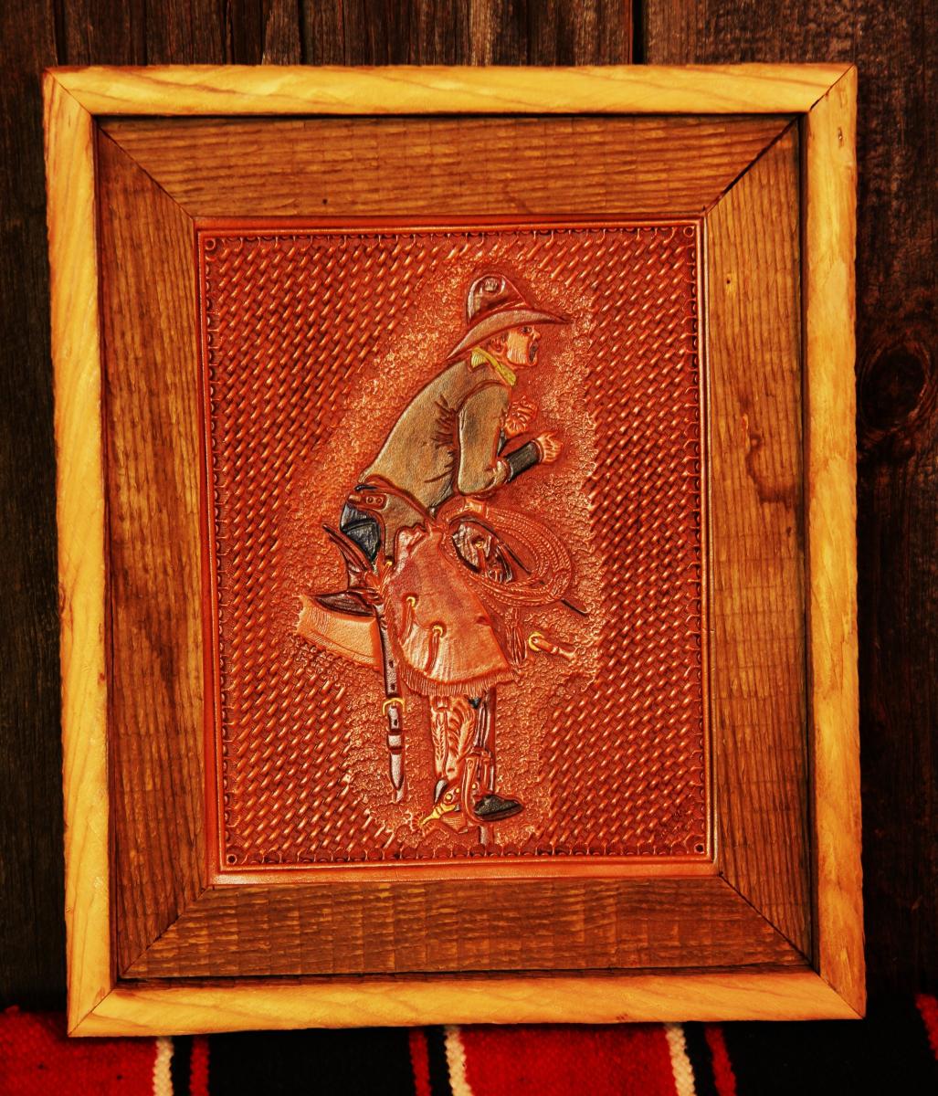 8 1/2" x 11" carving, basket stamped background, barnwood framed.