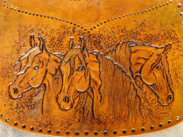 This is a purse I am working on. It has three horse heads on the one side and a single prancing horse on the other side. I am excited to see if finished!