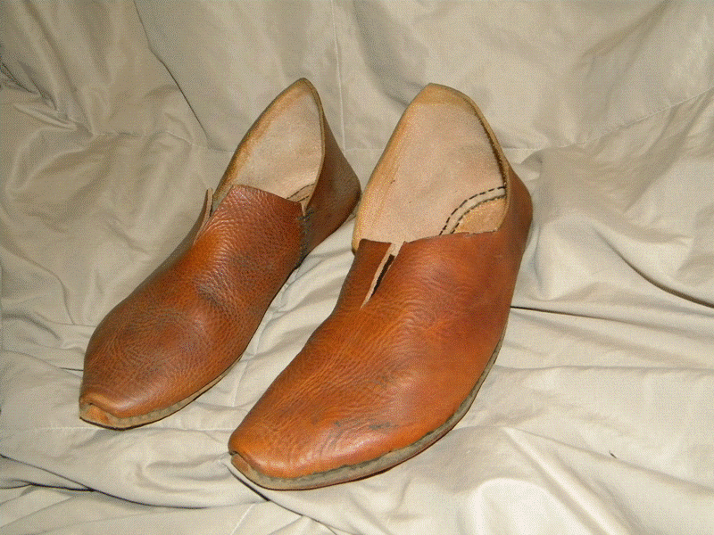 These are turn shoes. You sew them inside out & the turn them inside out. It's the way they did it back then.