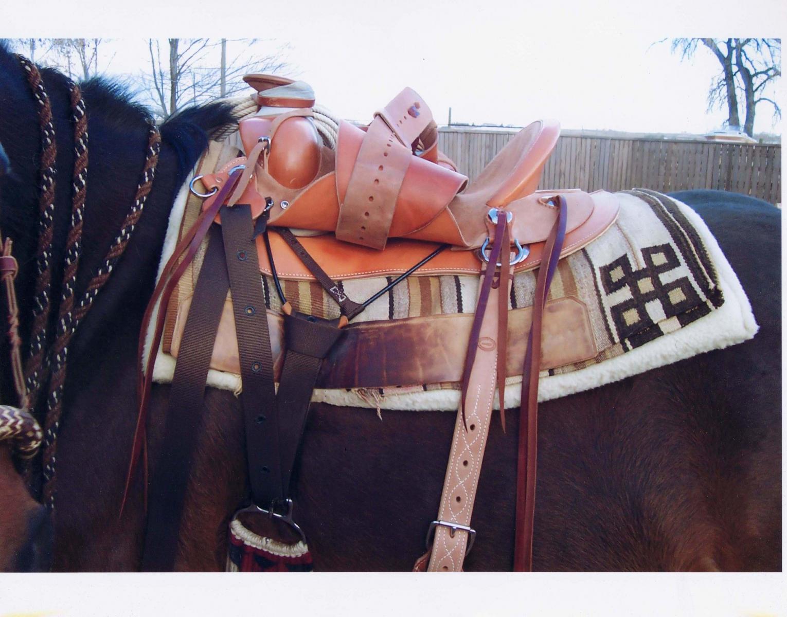 This system uses an adjustable nylon webbing strap. We sell these systems in kits for the convenience of the saddle maker. It loops behind the wear leather and latigo acting as a stop. It's pull creates a compound curve that the latigo sits to the bottom of. It's adjusted buy a buckle that sits st the bottom of the fork.