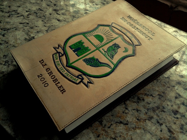 Members Anet du Toit Posted November 19, 2010 Report This is a Bible cover for the headmaster of our local high school. Not my idea for a cover design... Quote
