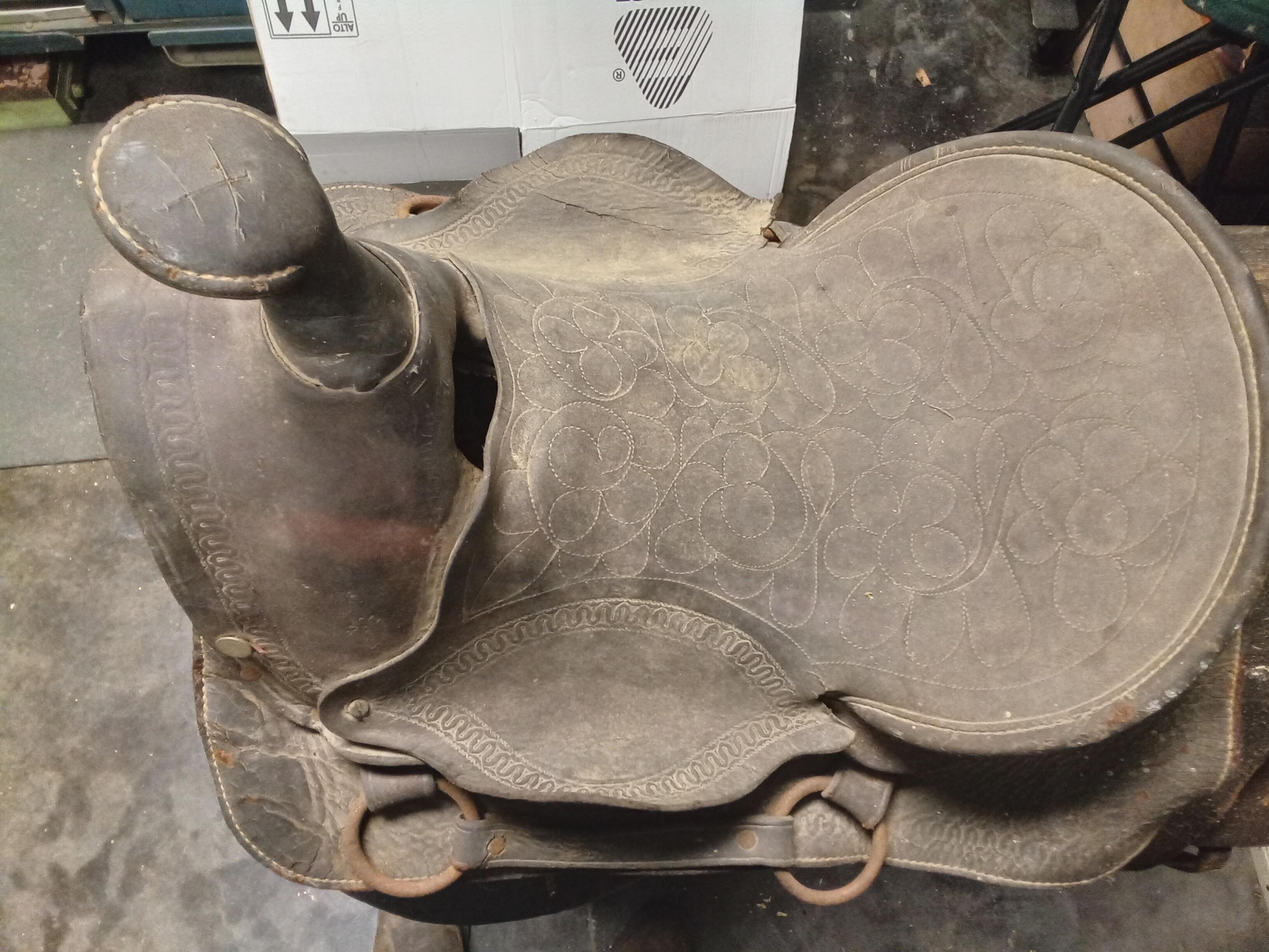Just to give some perspective, these are some of the family saddles I'm taking inspiration from, and eventually want to repair, restore, or preserve. This saddle my grandfather had made in the 60's and was one of his general use working saddles. It's one that's still usable. This one was a general use saddle on grandpas ranch, though it was mainly used by my Dad in high school. He had a drop calf he raised on a bottle and eventually trained it to ride and do circus style tricks as a rodeo act, and from the pictures I'm 90% sure this was the saddle he used. This saddle was my great grandfathers and goes back to the 1880's. It's one we've decided to preserve and not restore, as every piece would need to be replaced, and the tree's shape wouldn't fit modern horses anyway. The wear and tear on it to me speak volumes of hard life in the west and give me gratitude for what I have, so I wouldn't want to lose that restoring it. As you can see, these are all standard double ring rigging, and I'm thinking I'll use their ring placement and proportions on the youth saddle in this thread. I also started a thread for a saddle my Dad started before he passed, and I hope to complete. Restoring a Porter Saddle I'll also start threads for each of these and some other saddles eventually.
