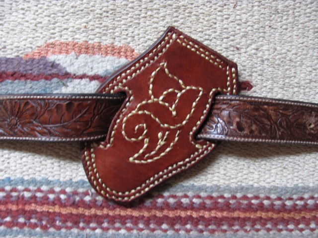 This pancake knife sheath is one i have just finished. It is for sale by the way. This sheath will take a 1 1/2" belt. The sheath pocket will hold a 5" to 6 1/2" folder or fixed blade knife. This is a Right Hand Draw to be worn on your right hip. All sewing is done by hand and color instead of tooling is my medium. After you have worn this sheath for a while, it will patina up real nice. If interested, please contact me. rush_one_or@hotmail.com