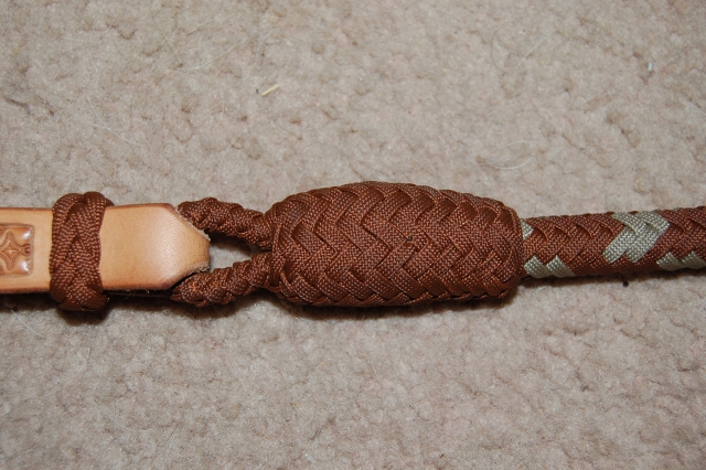 I actually plaited 4 strands around 1 core strand for the core of the body and I left the inside core in each strand. So really, I plaited these reins twice. I wont use this method again, it just takes too long. The eye is spliced back on itself, similar to how you would do it on a pair of romal reins. CW