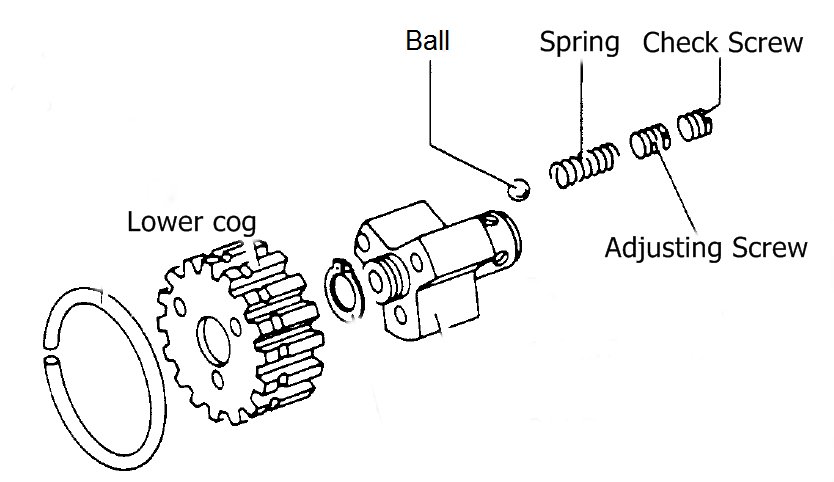 See attached image, I think a stitch length regulator/safety clutch parts breakdown is on order. Remove all check screws first, adjust for spring/ball pressure, then reinstall check screws to lock settings in place. If this mechanism appears to be new and not so improved over the preceding 111W stitch length and safety clutch reset system, you are not alone. These units are prone to give service issues. To make matters worse, this setup can easily confuse an operator when they are resetting the clutch or m, but most likely when they are adjusting stitch length, but that's even when it is working correctly. The issues compound when this unit needs to be cleaned and readjusted over time. -