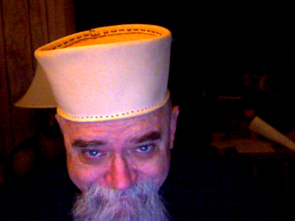 Problem with that is there's a dog-leg in the sides when you do it that way. I fought it out this afternoon and got it to work. I made a copy of the crown pattern and counted down 7 holes (out of 20). I put the old pattern on the new one at that point, making sure the overlap on each side was equal (1/2 inch in this case on each side.) Then I marked the new top of the pattern. All I had to do then was link the top line with the bottom one and transfer the holes from the old pattern. Fits just fine.