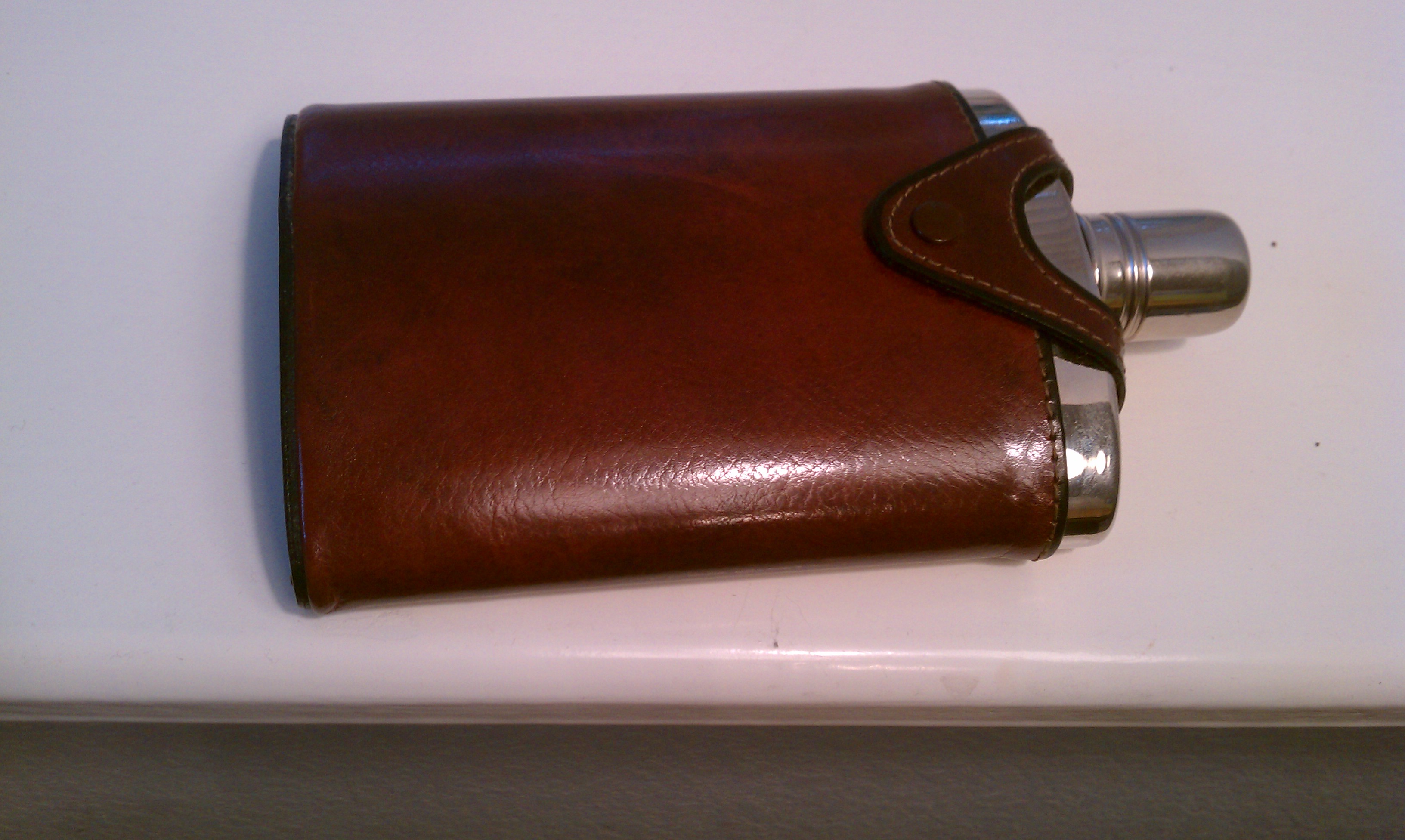 Attached is a photo of a leather covered flask-the leather is very smooth and shines well.