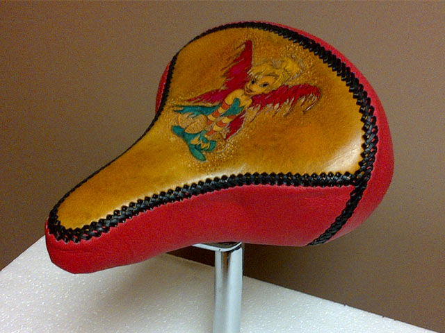 I made this for my sons girlfriend for Christmas, she's a big Peter Pan fan, and is getting a pink bike for Christmas as well. The pictures don't show it well, but the side leather is actually quite pink.