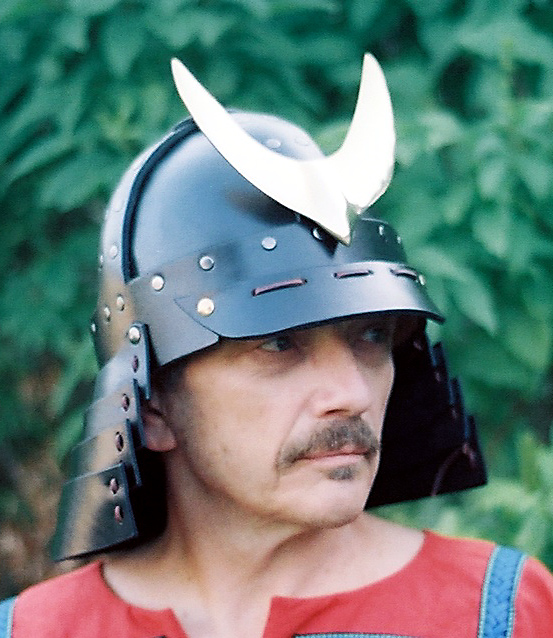 Here's a picture of my attempt at a Samurai helmet. Not really very accurate, but it captures the overall appearance.