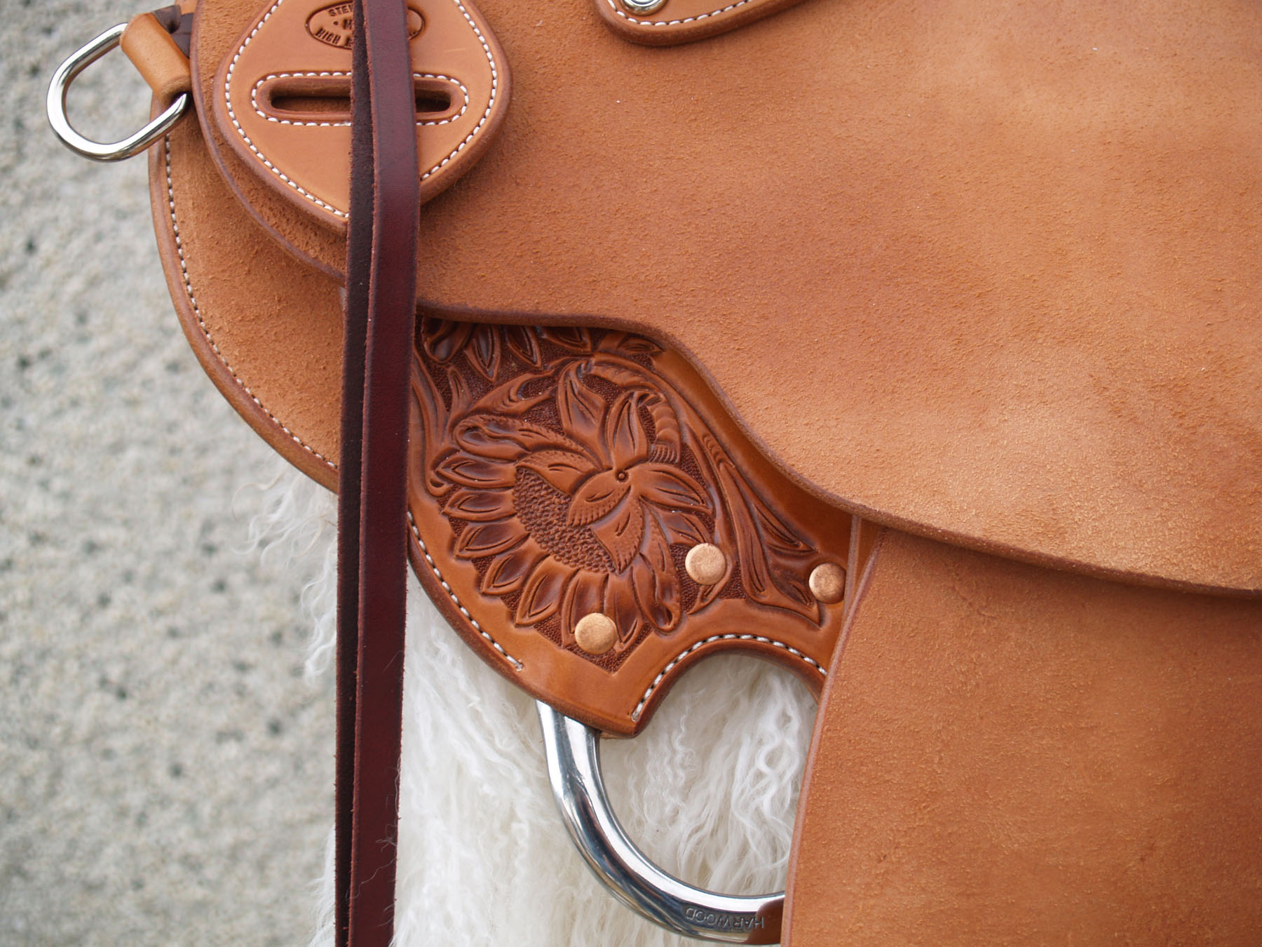 Howdy; I just finished this saddle, a good thing about this one is that it is for me, I am going roping all weekend to I should get some good tracks put in the horn by Sun. I have done some things that I have not done before on this saddle, it is the first time I have use a Warren Wright tree, first time for the flat plate ring riggin, the first time I have carved water lily's on my saddles, and the first time using Jeremiah Watt's Buck roll forms and string conchos. Let me know what you think, I am looking for open honest constructive criticism. Thanks much Steve