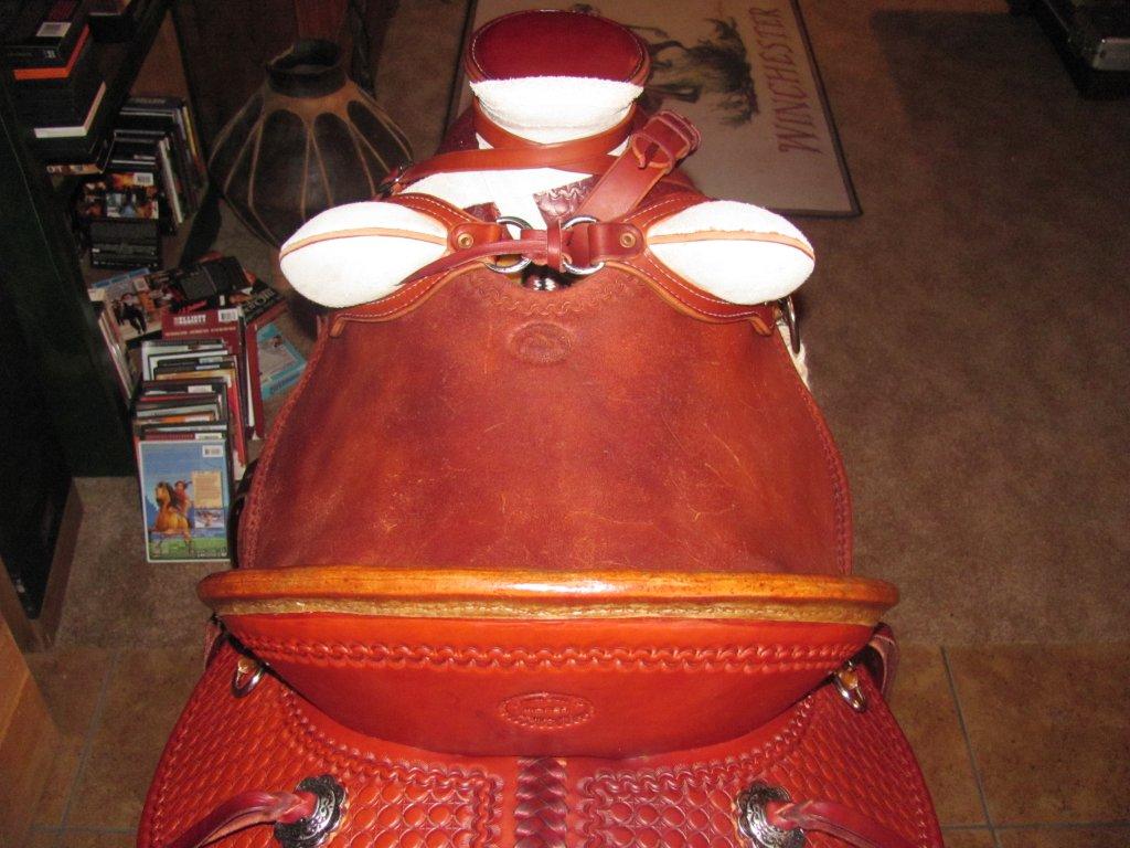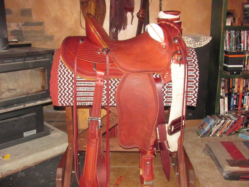Ijust finished up my second saddle and figured I'd post a few pictures for some constructive critism. It's a 15-1/2" wood post wade on a Steele tree with Chahin leather. I probably wouldn't build on a Steele tree again but i did like the leather. It has JWP hardware, a 7/8 flat plate rigging, rawhide cantle binder, mule hide horn wrap and bucking rolls. Let me know what you think, thanks.