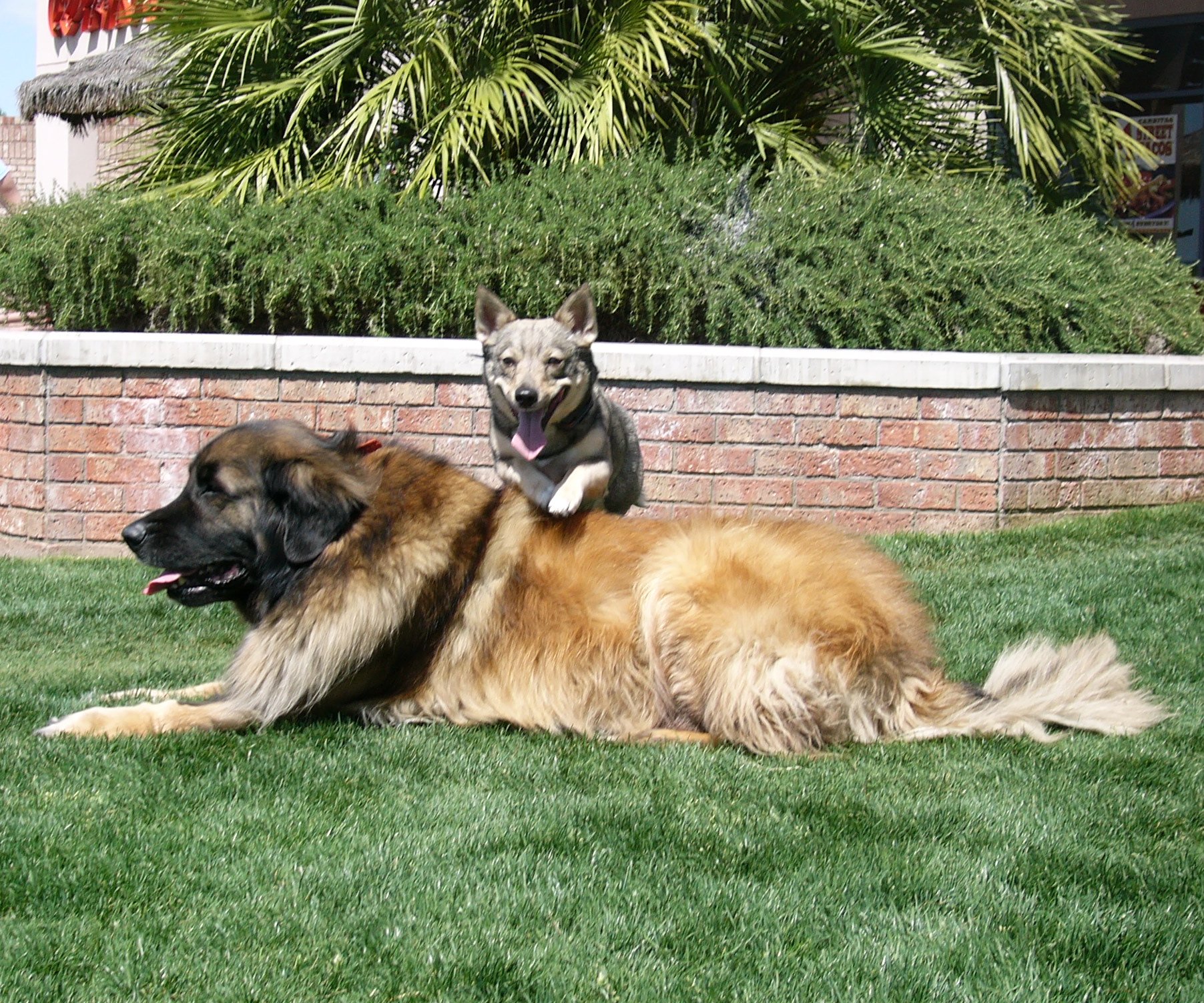 I am just toying with this idea, but I have a hundred forty pound Leonberger and a little Swedish Vallhund, she is a 21 pound cattle dog from Sweden, and they do some few tricks. Soooo... I am wondering if I could rig up a saddle for him that would actually stay level on his back. I know that dogs have loose skin and that's the problem, but has anyone actually made a saddle for a dog? The dog alone is my new Leo Mars, and he's considerbaly larger than Cosmo was. Of course Astra is seven, and probably a pound heavier than in that picture. Thanks in advance L.A. Pat
