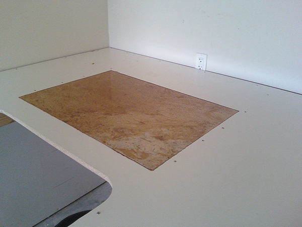 I have started on my workshop and I can hardly wait till it is done so that I can start pounding leather. The first project I have done is a new tooling bench. There is a space in the garage in between the water heater closet and the heater/ac closet that was just the right size for a tooling bench. I think the space was ment for a freezer. I used a quality particle board with a laminated surface for the top of the work bench. The front edge of the bench is set back 10 inches so that I could have the bench under my elbows with out having to lean forward as much. I cut out the center so that I could drop the granite slab in and make it flush with the surface. When it is all done there will be shelves both under the bench in the space to the right and left of where I will sit and also on top of the bench. I have a tendancy to over build and this thing was a beast to get inplace by myself. but I think it will be sturdy and make a good work bench. I plan to build another 8ft x 4ft cutting table and a smaller 8ft x 2.5ft counter type space when this bench is done. Those along with more shelving and I will be up and running!