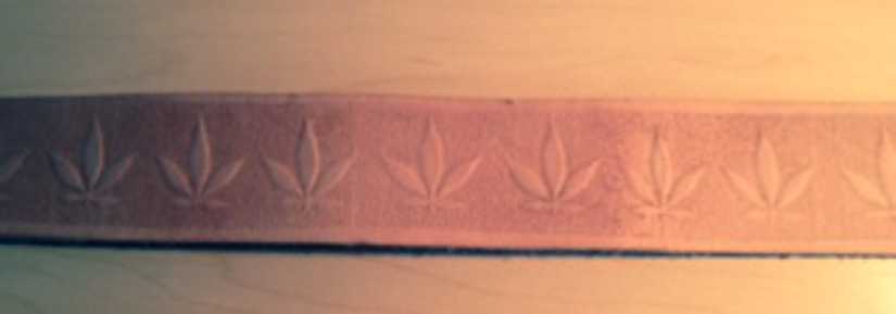 I've often been asked if I could do an embossing roll and I finally got a little time to work on one. This is done in the same delrin plastic I use for my stamp and plates. The first version of this just had the figures cut in. Because the surface is slick, it did not grab. I added a texture to it which gives the stamp enough friction to pull the leather in. This is a 1 1/2" belt blank embossed on the Speedy embosser (same as the current offering from the evil empire). This is the least flexible of the embossers, so it should work on the Tippmann and the last offering from the Evil Empire embosser or anything that uses a 1" center bore. Besides the surface preperation, I had to figure out how to safely and accurately center bore it and cut the key slot in. The real trick is getting the start to equal the end so it stops engraving after 1 revolution. There is no information out there from those that offer such things, so I've had to reinvent the wheel. But now that I've done it I can add whatever figures and patterns on rolls for use. I think if I stain this belt green it will look nice. Cheers!