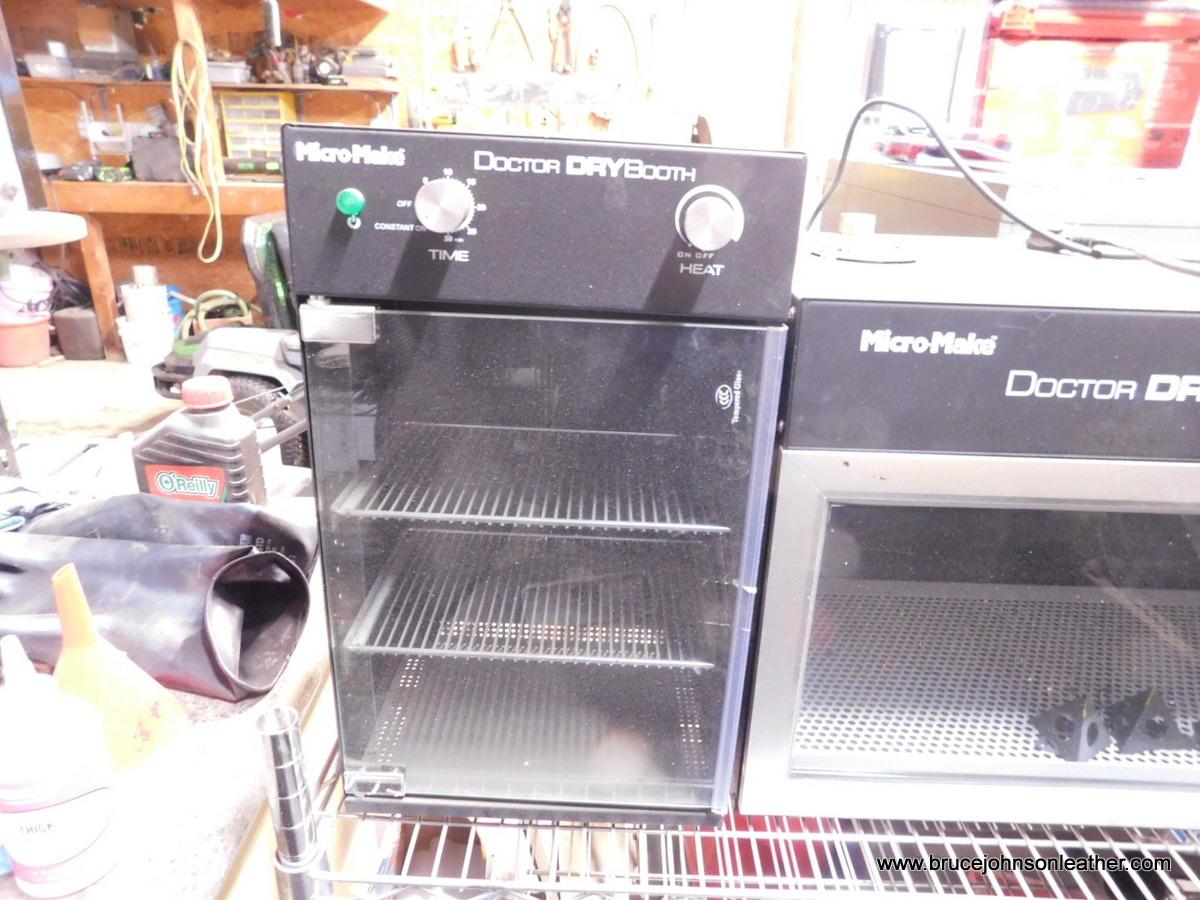 Here's something I stumbled across a while back....I fiddle-farted around with drying boxes with bulbs, a cooler with a light bulb, and the open-door low-heat in the kitchen oven when I was making a bunch of sheaths and molded stuff. They all worked and all required some level of baby-sitting. Fast forwarding to the full time tool restoration period of my shop life. I was having trouble with my rattle cans not spraying as well in the cold temps and then the paint being slow to cure. Several on-line tips - set the cans in a bucket of warm water an hour before, incubator, old smoker, etc. It worked. One restorer suggested the Dr DryBooth paint drying cabinet from MicroMark. Intended for hobby model painters for drying but he was using it to heat cans and preheat tools to accept treatments and then keep warm for penetration and drying. I started with the XL size for drying splitter frames and set my cans to one side. I eventually got the other size vertical one on a special. I had a guy come by and saw them. He wondered how they would work for drying sheaths and holsters and bought one. His feedback a couple years ago to me was that is was really nice. Basically stack them in there, turn it on, and no babysitting. Controlled heat with airflow, no scorching risk, no babysitting and likely safer than his EasyBake oven set up in a flammable wooden box.