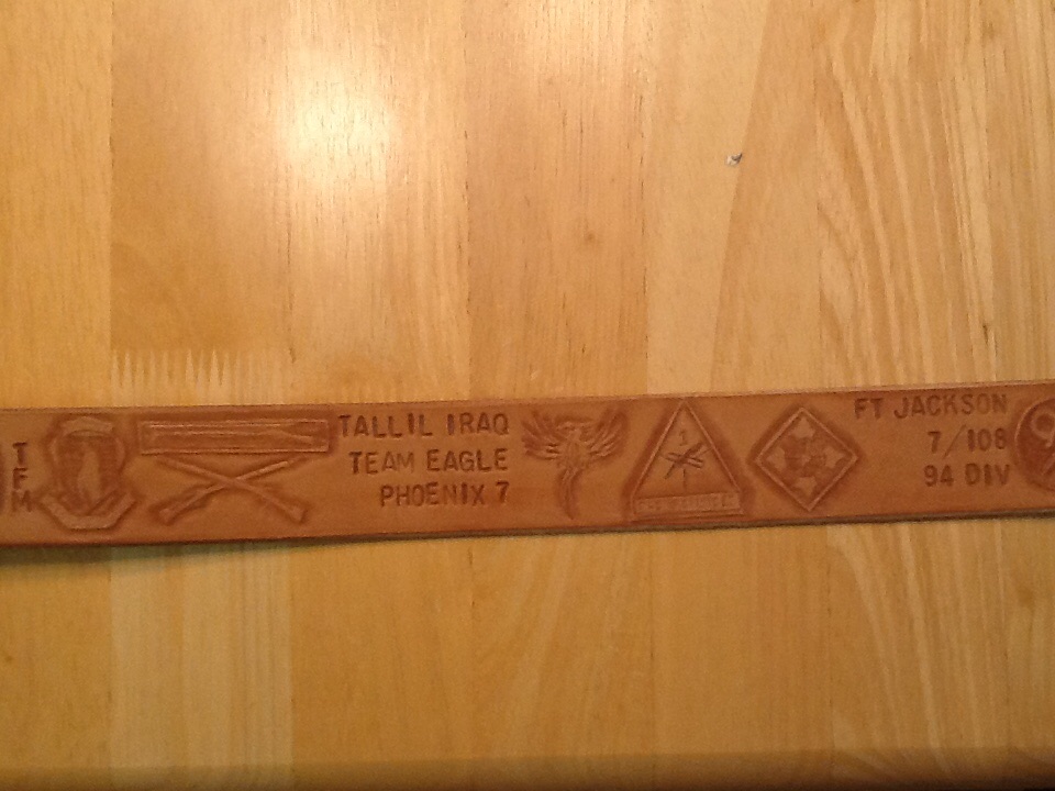 This is the second one I made, the first one was for myself, see photos. The green dye was not completely dry when I put sheen on and it ran over on the yellow. The second one was better but the yellow didn't stay as bright as I hoped. They sit very comfortable and were perfect for long conversations with young Soldiers. -