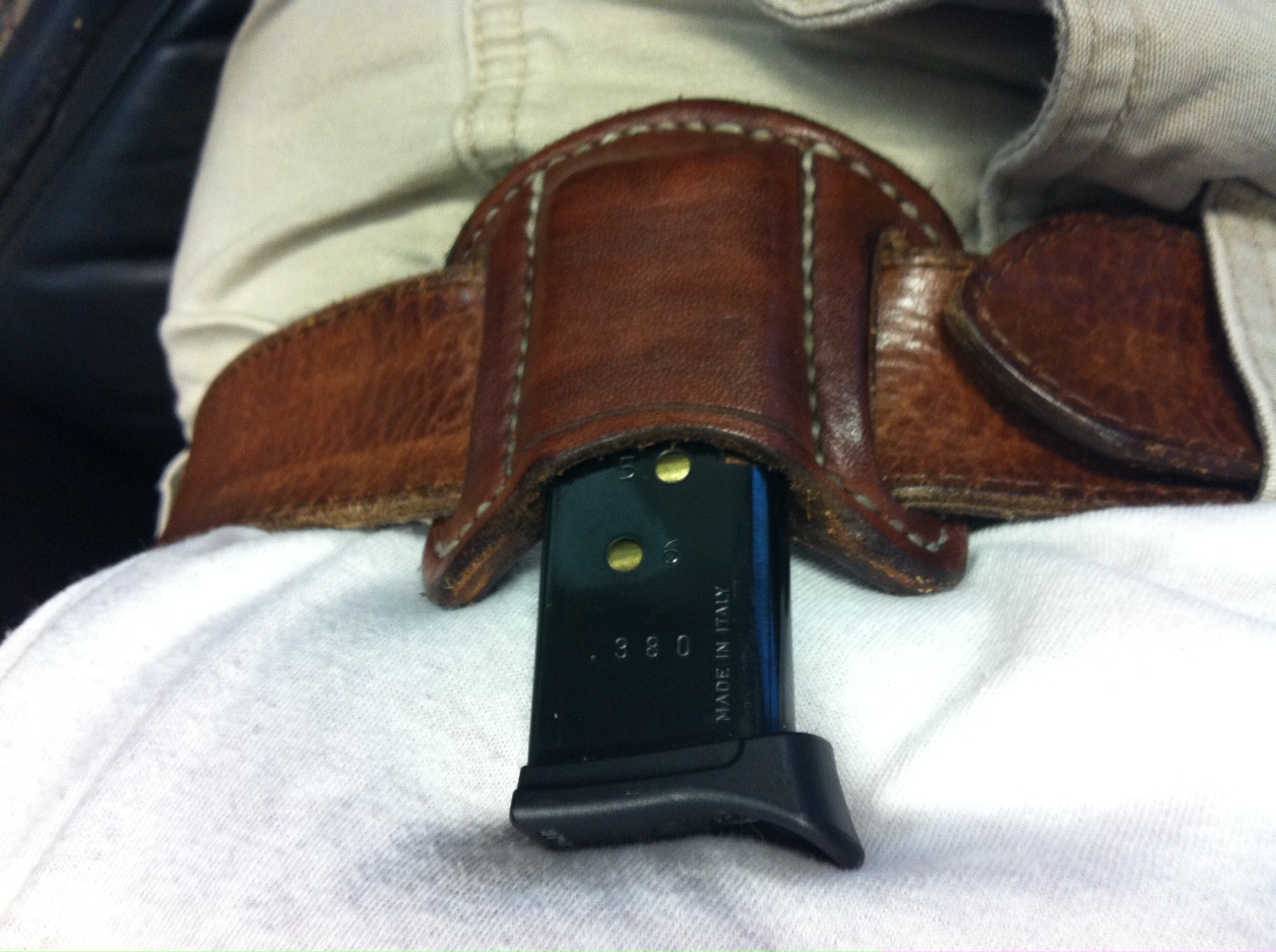 Hey Eric...Ive been toting a gun on the job for 18 years this year, and i have had the opportunty to carry lots of different mag holders...the pancake style is, in my opinion the best...the fold over snap on ones sag out after a while and get caught on everything...the belt channel ones sag out after a while as well...for less bulk on your doubles..shrink your negative space in the middle and move your stitch lines in as close as possible..you will have to work to get the mags in when wet forming but it will be smaller by far...i did an inside the pocket mag holder for a sig 239 in 357 sig..i got two mags, side by side to fit in pocket with room to spare...ill try to find a pic of some of my "no boundaries" mag pouches so you can get a better idea what im talking about...now, i wouldnt stop offering the ones you make now..they are incredibly awesome looking mag pouches...i would just offer ALW "lite" mag pouches as an alternative...