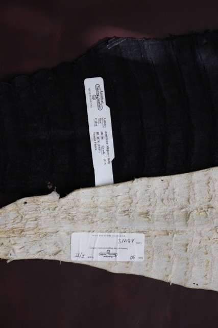 Two glazed alligator skins for sale I'm clearing out. Both skins were originally tanned from Amtan. I've used some of the tails of both skins so both are discounted.