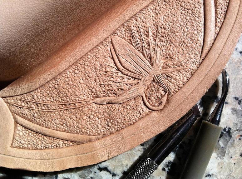 A couple more freehand tooled fly patterns. I am starting to pick up a few orders for my fly fishing leatherwork. One will have an old 1800's fly pattern that I look forward to. Chris