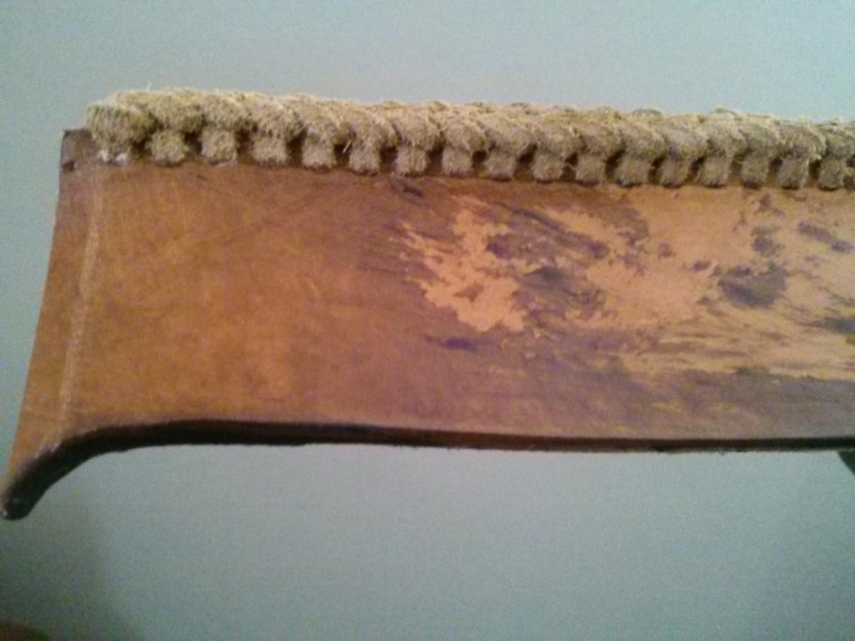 I stumbled upon this edge.braid whilst experimenting with a round lace doing a double loop stitch. I was just looking for something that would cover more of the edge and came up with this on my own. not sure what it's called or how it should be properly started on an open edge, stopped on an open edge or spliced (think I may have the splicing worked out, have to rest), but if someone can identify it for me, id be grateful....its similiar to a triple loop, but instead off just coming out of the back and crossing over and going through the front of the previous bite, you come out of the back, weave under the last stitch on the front, over the second to last stitch on.the front and under the bite (which is four strands wide and forms two crosses next to each other), out the back over the second to last stitch on the back and under The last stitch on the back,proceed to go into next hole on front side.....complicated to explain... Ill take pictures if need be, hopefully someone knows what it is