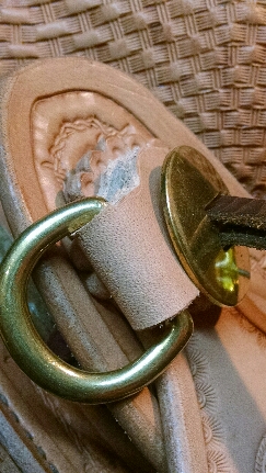 I need to replace the left side d-ring on this saddle. It is attached with a rawhide loop and a copper rivet. I don't have to use rawhide for the replacement, but it would be nice since the saddle has a rawhide cantle binding and horn wrap. Whether I reattach it with leather or rawhide, I need to replace the copper rivet. I was thinking about cutting a tiny hole in the fleece lining to get to the back of the rivet and then stitching it up when I am done. Am I way off base here? How is the best way to make this repair? Thanks for any advice. Randy