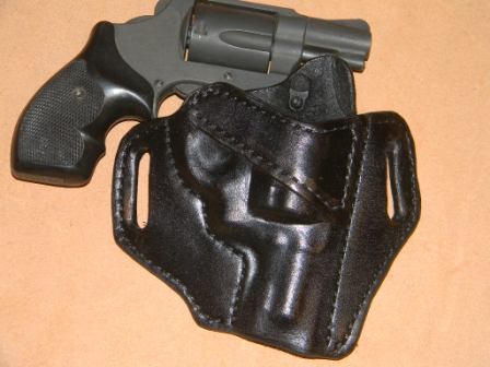 Learned that saddle tan doesn't look that good on ostrich. Good thing it is a pocket holster… Tried to do an avenger style. dont have the belt angle right yet.... another one for the learning ben.... J frame revolver ok. Seems to be a little too high above belt. No flop but with a lesser belt there could be.... What do you think?