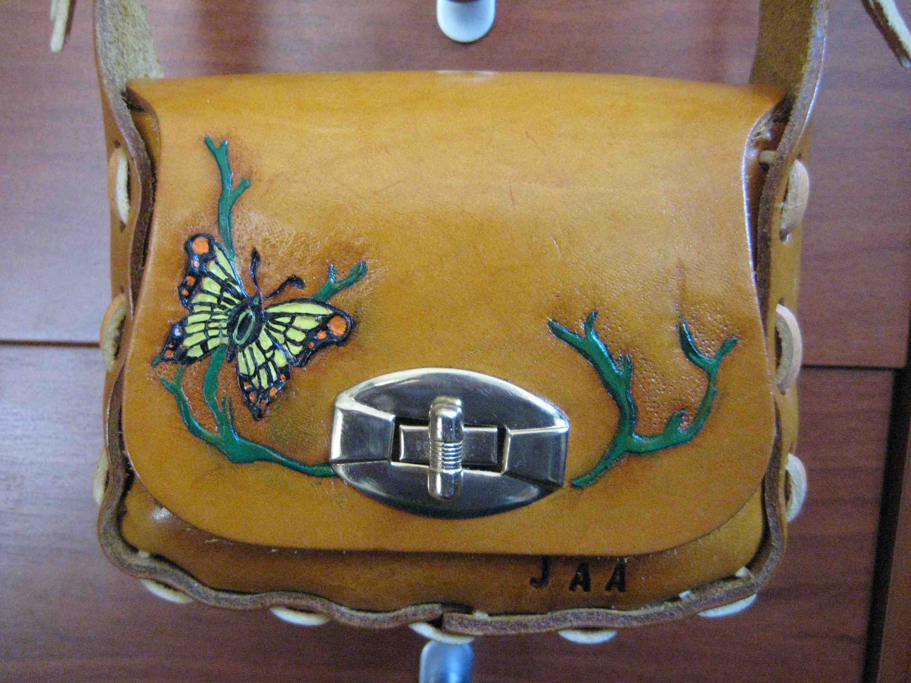 2. Handbag, kit from Tandy, for my gf, with a butterfly which I got off another Tandy kit.
