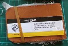 That's really nice. When I started recently, I needed something similar for my hand-sewing saddlers needles. My needle holder evolved... First I bought a small vintage needle-wallet*. I like the design but it was much too small for the leather needles. So I made my own, much larger version from an old belt. Initially I used white muslin "pages" at the suggestion of a dressmaker. But they were too flimsy for the heavy leather needles, so I replaced them with felt (which is also what my small vintage wallet uses) - much better Then I added small pocket inside the cover to store some needle threaders - shown above (I needed the threaders before I got an eye test and new reading glasses recently :D !). But then, like you, I decided that I wanted to keep new needles in their original envelopes. So I added a shallow pocket to the outside back cover and strap higher up to hold the long thin envelopes. - made from left-over pieces of another belt. It's not fancy but I'm really pleased with it, it is very practical - made specifically for my needs I suppose I would now like to keep my little thread clippers with this, so I might add something to hold that later. *The small vintage needle-wallet has a leather cover, white felt pages and pop-fastener with a 'B' on it. It is the small wallet shown alongside the much larger leather-needle wallet I made for myself, which now has black felt pages.