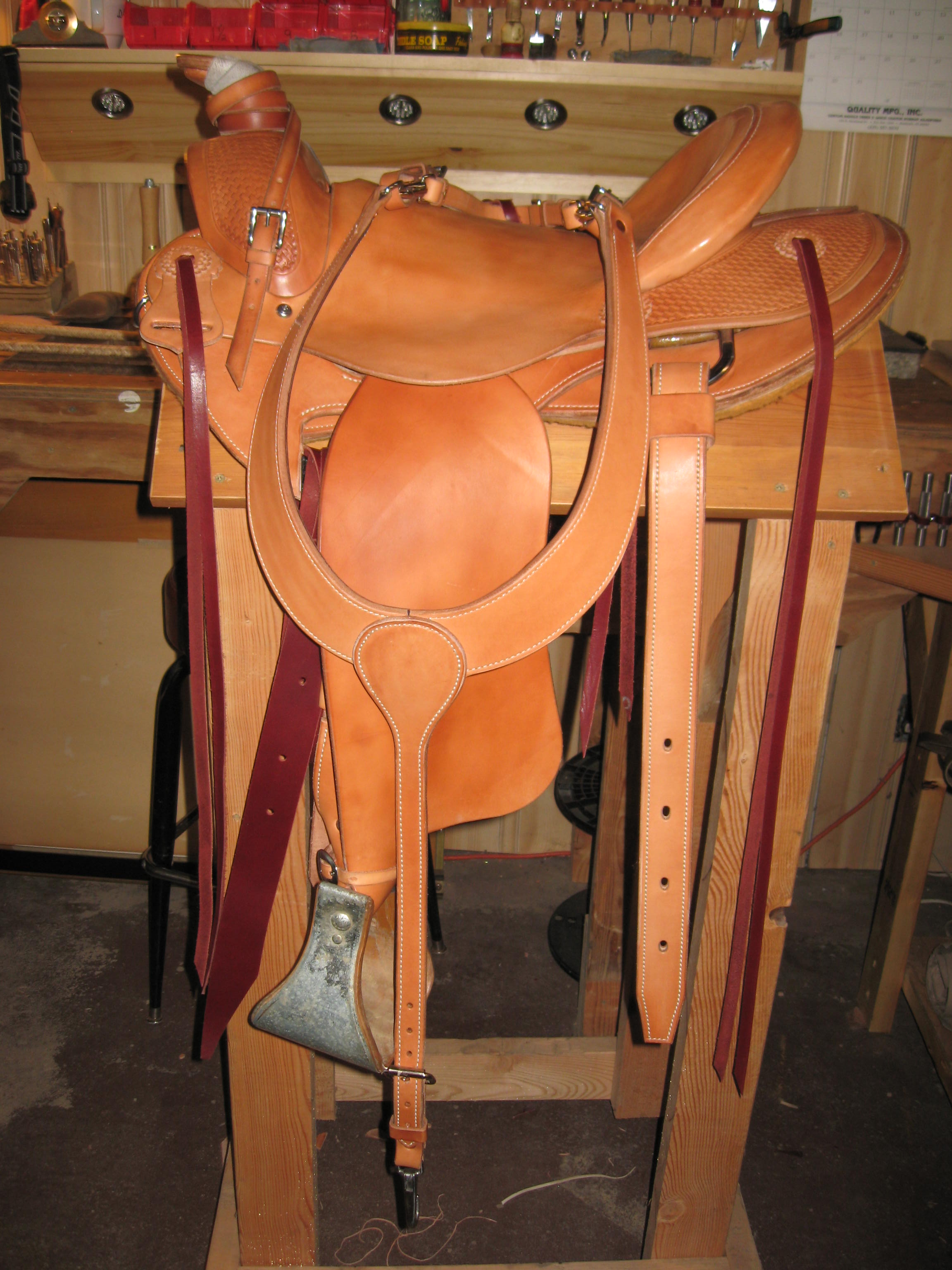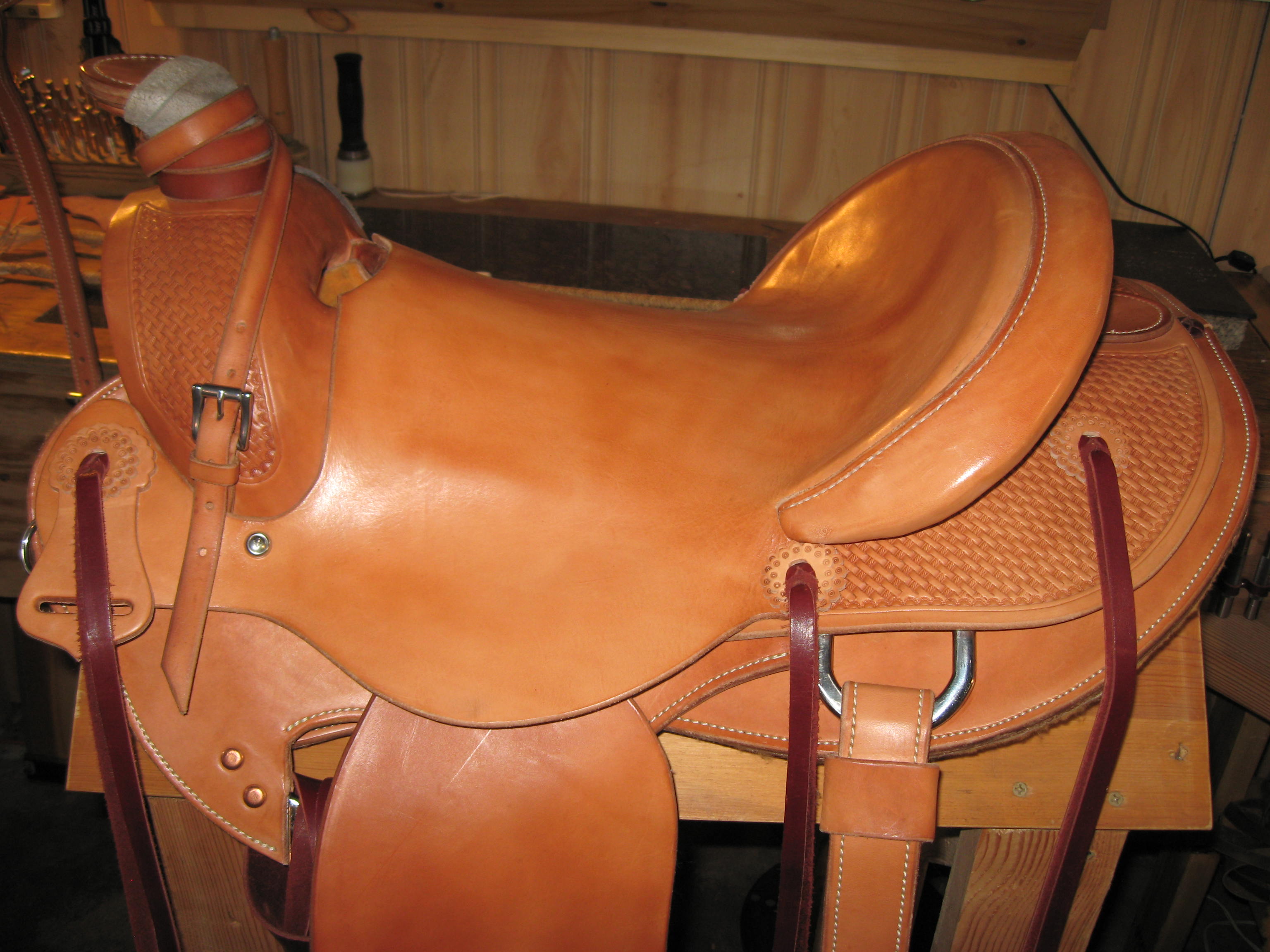 I have a pretty basic selection of tools. There are a couple that I found I needed to get things done better. A cantle binding trimmer, which is a french edger with a longer reach and narrow blade. A 6 inch head knife for skiving, could of got along with the smaller knives but I think it is bit easier with the bigger knife. Some good quality awl blades. A variety of tools to slick and mold the leather, bouncers, creasers, and rub sticks I made some and bought some others. I used three hides making this saddle. I had to do the swell 3 times and the cantle 5 times before I was able to get things right. I also had to scrap the first seat cause somebody cut it to small the first time. You can only strech leather so much. I didn't split anything on this saddle did a lot of skiving.