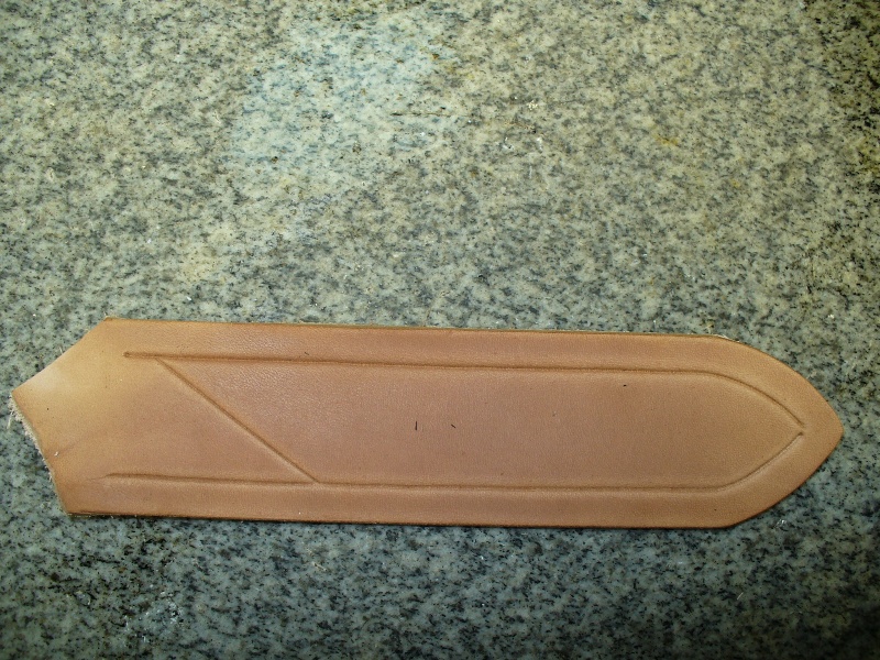 Next is a belt. Lay out your base lines the same way. You can lay a ruler on the opposite side of your angled line and scribe a VERY LIGHT line down the belt several times. This gives you a reference to keep your angle correct. Stamp the full length of the belt and repeat til you get to the other side, stamp your border and you're ready to go.Looking down your belt at a flat angle, you should see straight lines running the full length of the belt. This is what happens when you use the wrong angle for something as narrow as a belt.
