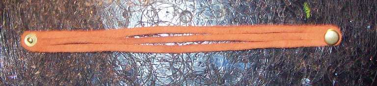 I love Sharpies too ! Mystery braids are something I learned through Tandy. They have/had an instruction sheet on them. I've attached pics of one made and un-made. This one was cut and snaps set by Ann McGrath - a friend of mine from PA. It's suede. I usually use veggie tan, around 4/5 oz. and stain it. (I also don't usually set the snaps this close to the edges.) I've even done them where each strip was a different color - neat effect. I'll see if I have the instruction sheet and pm it to you. I don't think I should post it here for copyright reasons. I found Ann's sold REALLY well at a recent festival because of the color variety, the softness of the suede, and because she had smaller sizes for the kids.