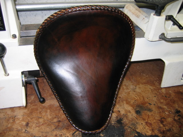 I do use antique paste all the time on seats. I only use the alcohol based stains. On this seat I kept working back and forth from dark to light and medium colors. I used black, dark brown, medium brown, sheridan and buckskin dye; all by Fiebings. I show pics of the seat not because I think it is so terrific but to show the results when the dye is applied nearly dry on a cloth. I used sheriday antique paste when I was done to help blend all the colors. A final coat of leather balm with atom wax as the only finish.