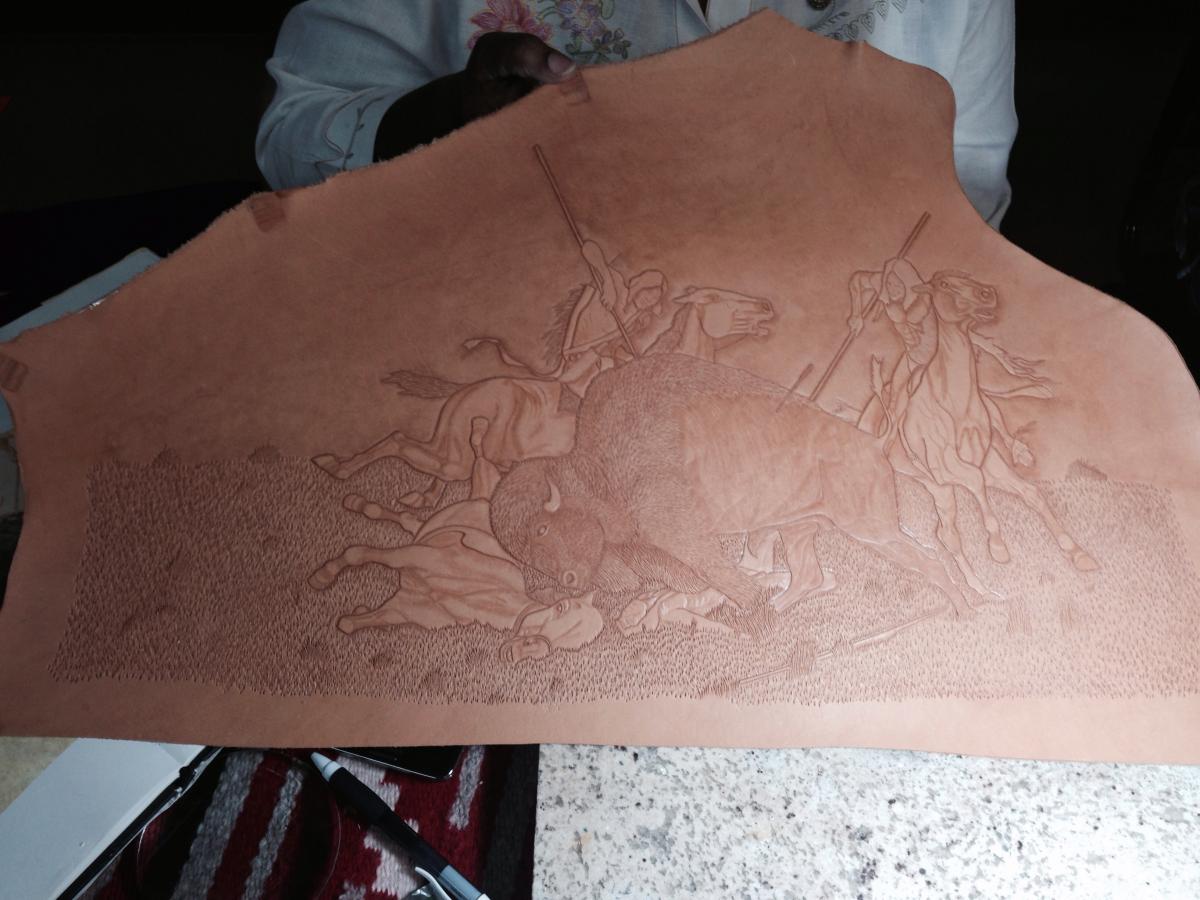 This Saturday I went to my local Tandy. There was a girl in there working on this, and I love this piece. It was originally painted by Remington, but her work is beautiful. I am kicking myself in the butt now, but I will try to reconnect with her and see if she can take me on as a student.