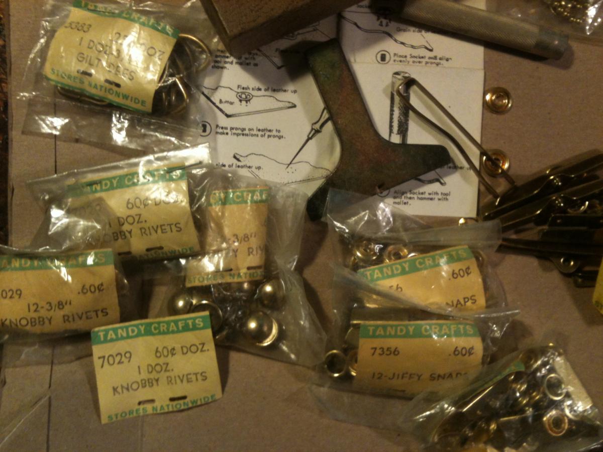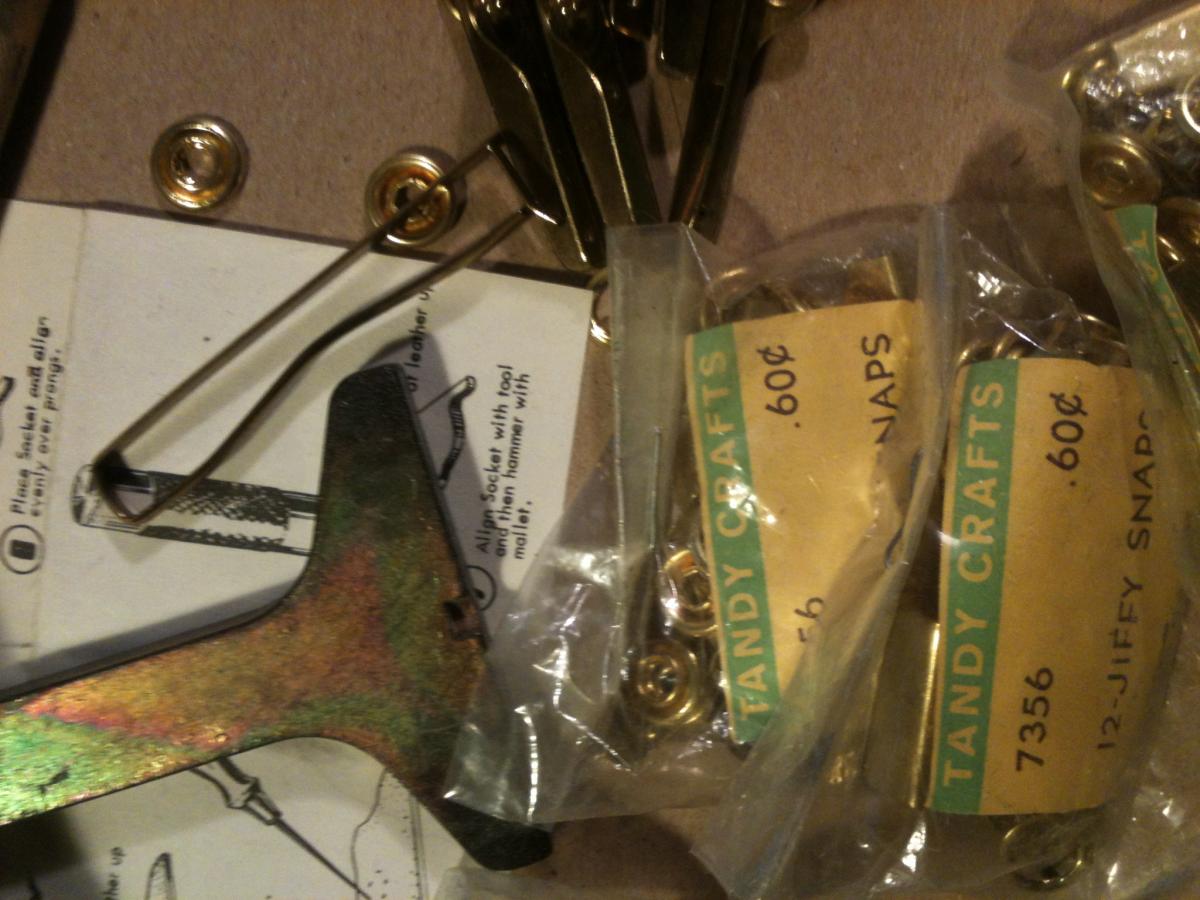 I have some too, and they came in a tool set, all of which date pre 60 as well. I also got these bar snap thingies for change pockets i assume and the setter tool., in old tandy packaging. Original craftool box tool. Only $0.25 for a DOZEN 3/4 dees.....