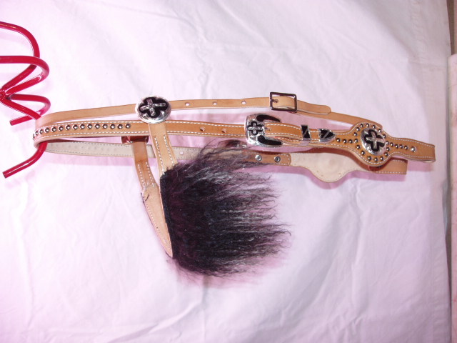 Here is a headstall that I finished up this week. It has Angora wool on the browband and custom silver. It is a custom order from a young lady that does a lot of rodeoing. Would not be my choise on a horse but they paid good. Randy