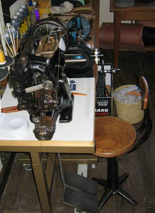 Just wanted to thank everyone for the help you all gave me in choosing a sewing machine. You were most kind to give so freely of your time. I took it all on board and distilled the following: Whatever machine you buy somebody else won't like it... Whatever machine you buy somebody will have used something better... Whatever machine you buy, only you need get on well with it... Whatever you pay for a machine is entirely down to your budget... Given those points, I checked my wallet, rapidly decided against importing a Tippmann Boss or an Artisan machine from the US and went looking closer to home. Twenty miles down the road I found a monster. The biggest ugliest sewing machine I have ever seen and it weighs more than a small car (okay, that was a slight exageration - but only slight). It was made a very long time ago by the British United Shoe Machinery Company and is still in great working order - although, like me, it is now showing a few signs of age. I can't help it but I felt an affinity with the thing and when I tried it and it worked perfectly and did exactly what I wanted for a fraction of the cost of a new machine my decision was made for me. It has just been delivered and I thought I would share this momentus moment with you all - plus a few pics of my new leather workroom that is slowly coming together. It is worth noting that the floorboards you can see were cut and laid in the early 15th century. The weird looking seating is my collection of Singer sewing machinists stools and chairs from the 1950s - they are getting pretty rare now but you can still find the odd one here and there. My leatherwork machines date from around 1890 and include a rotary hole punch, creasing machine and a strap cutter which all ought to be in a museum! My wife says I ought to be in one too... that or an asylum! Thanks again guys. Ray