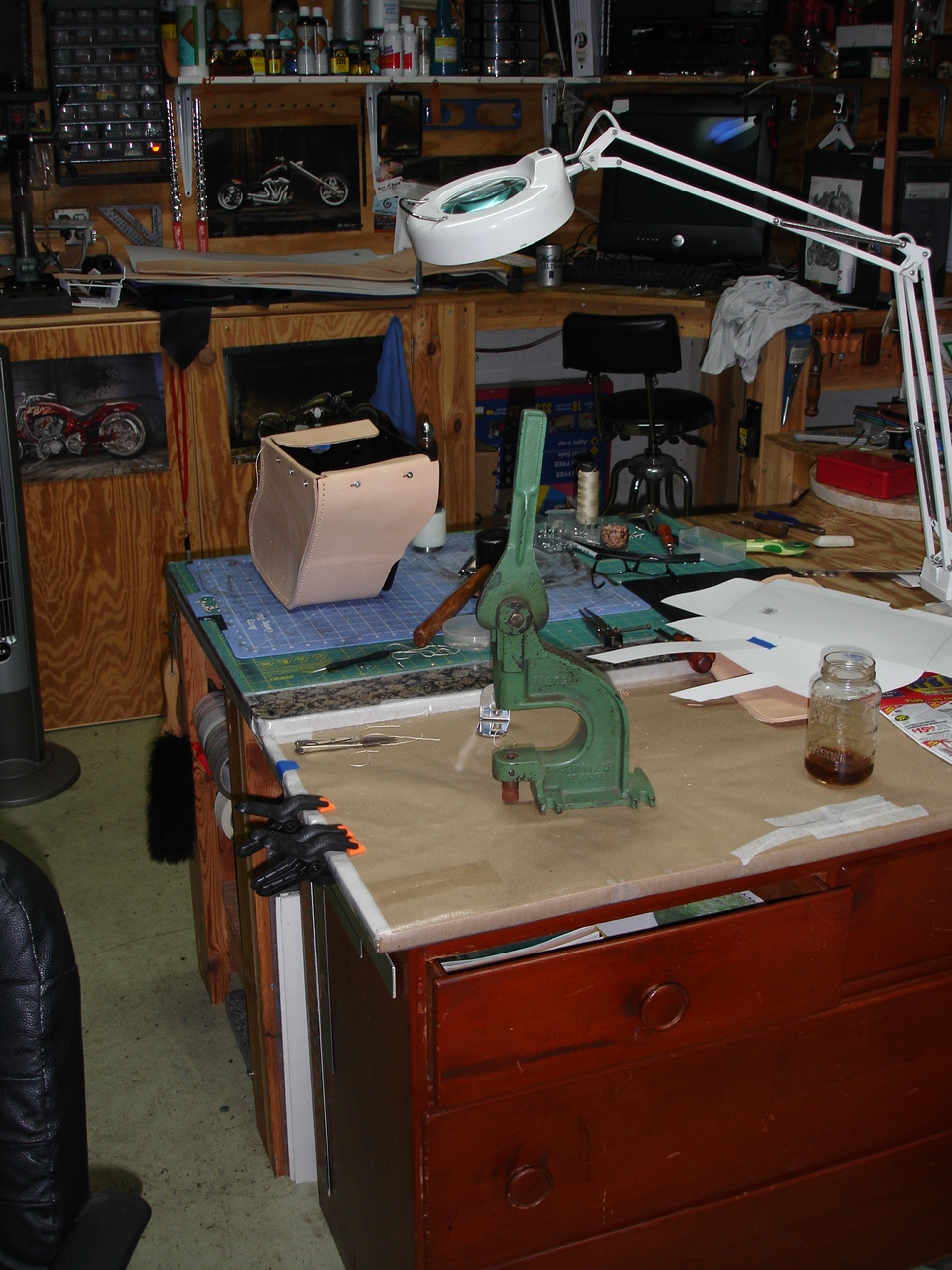 And last, but NOT LEAST, here's a picture of the Seat I started during BikeWeek this year. I know. I know... you're saying "Will you finish the thing already?" But, in my defense, I've been so busy that I'm lucky to have gotten as far as I have! I am almost finished though. The bottom is going to be all Croc Belly and laced with Black Kangaroo lace. Here's where it is so far...