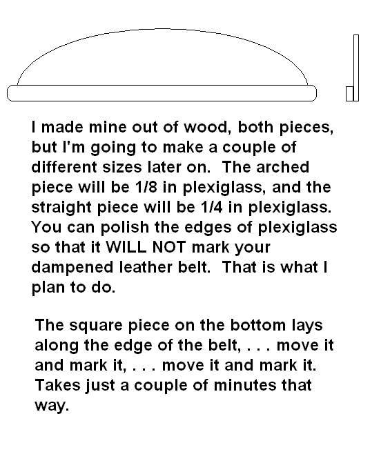 I don't trust myself and my abilities on something that technical. I try to devise some kind of a helper. If I was even doing only one of these, . . . but knew it was for a special purpose, . . . I'd make a sanding jig like in the drawing. It will make the bevel completely the same all the way around. The key to it, though, is the round disk you must make and put on the dowel rod. Put the plate on the rod, . . . clamp the jig up close to the sanding disc so you sand the edge of the disc at a 90 degree angle, . . . use the sander to make your disc perfectly round, and as near the diameter of the leather as you can get it. Then rubber cement your leather to the sanding disc, . . . turn the jig so it is at a 45 degree angle, . . . clamp it firmly but not rigid in the lower left corner, . . . turn on your sander, . . . swivel the disc over to touching the sandpaper, . . . rotate your disc, . . . voioa, . . . perfectly sanded bottom. May God bless, Dwight -