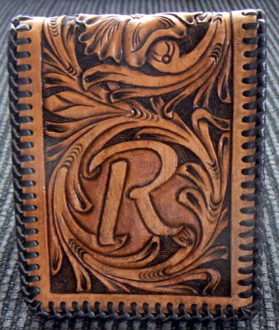 Haven't posted anything for a while. Not that stuff hasn't been moving out of the shop, but with announcing rodeos all over the US, I haven't really taken the time to post much. Anyway, here's a wallet for a customer that had been on order since April!! It turned out pretty nice. I hadn't done that braided edge thing for probably 30 years. I remember using the Tandy kits back then, but I thought I cut everything myself. Guess what...my holes didn't line up any better than the old kits. I remember why I hated doing these edges when I was in 4-H. Anyway, let me know what you think.