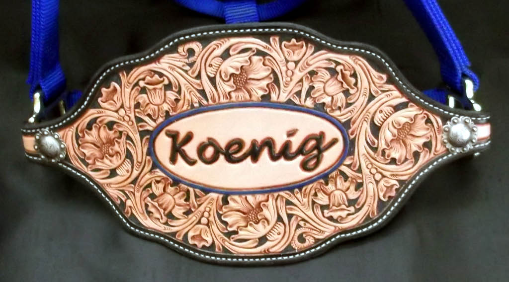 Here's another floral bronc halter out the door. This customer wanted a dark blue background on a blue halter. The blue was a bit darker than I thought it would be, but nonetheless, I still think it turned out pretty good. Take a peek and let me know what you think. Be blessed ya'll.