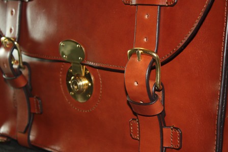 I also like to follow the mechanical and functional into the artistic. If stitching or riveting needs to exist and is done with thought and consideration, the outcome should most likely be artistic. Here's my latest bag. I'll call this one the Walden Diplomat. Prior to stitching, I'm like a slalom skier visualizing the course in my head, where I want to turn, how I want to incorporate the hand backstitching so that whatever is done on the right side is also done on the left, etc. ed