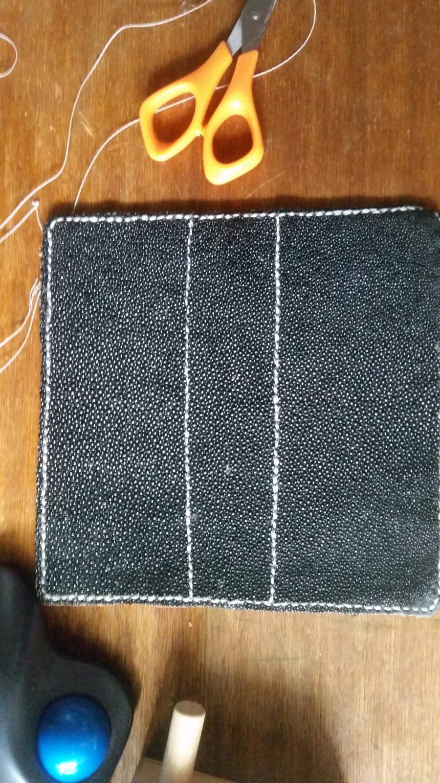 Ok so this is the very first time I have ever worked with sting ray, have an interesting bracelet in the works that my wife wants to do so will take picutres of that when its done. Two things that I have found out about stingray A: It's a real pain in the ass to cut B: It does not burnishes worth a damn you have to use more sand paper than anything else but it does look very nice. C. it does take edge dressing nicely you can't see it in this photo as I had not dressed it with the dressing at the time of the photo will take a better photo shots later on tomorrow. The lining is pig skin, had an idea of mixing a few different exotic skins together to make different wallets such as stingray and ostrich or something along that line. So my question for everyone is has anyone else worked with exotic leathers, if so what was it and name two things you learned about that leather to help us newbies out when it comes to exotic leather.