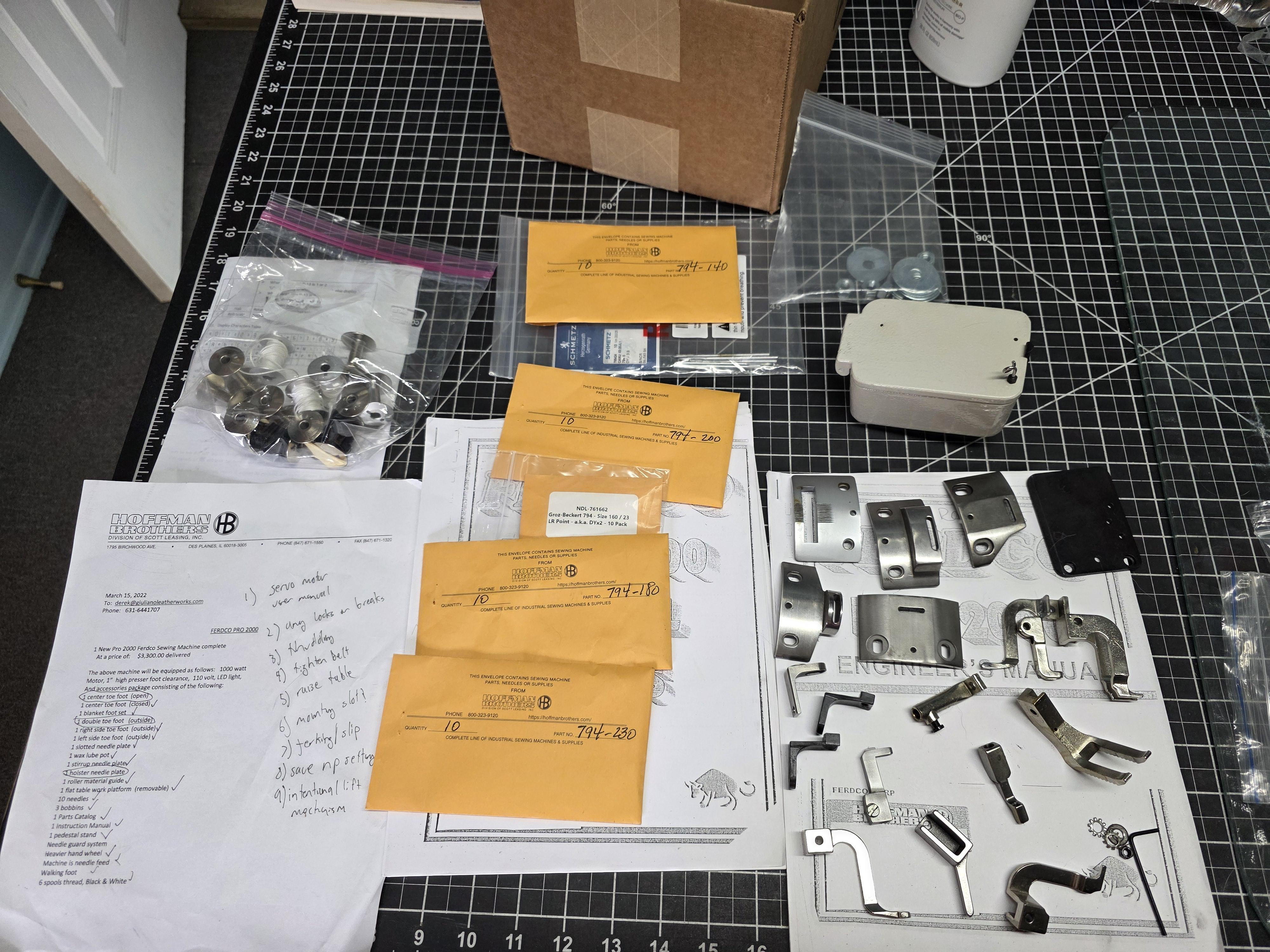 Members Deek Posted 2 hours ago Members Report Posted 2 hours ago Located in Suffolk County, Long Island, NY Asking $3500 OBO Industrial, heavy duty professional leather sewing machine. Identical to Cowboy 4500,Cobra Class 4, the Juki 441 or whatever the Techsew and Artisan equivalents are. This thing is a beast, if you're looking at this listing you probably already know what it can do, if not just research the machines listed above. Comes equipped with Needle Positioner, Servo Motor and Speed Reducer. Includes many accessories in addition to the ones listed on the original invoice. Lots of needles, feet, bobbins, feedplates, flat bed table attachment, edge guide, lights, wax pot. On a solid steel pedestal that can is threaded to take caster wheels. Including a ton of thread, mostly Nylon some polyester I believe, in all different thicknesses. This thing has maybe 8 hours of use on it. Bought it maybe 2-3 years ago but then got too busy to pursue my leather business anymore. Also going to be selling a whole lot of leather soon, so if you come pick it up and can check out what I've got. Quote