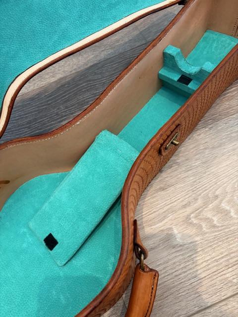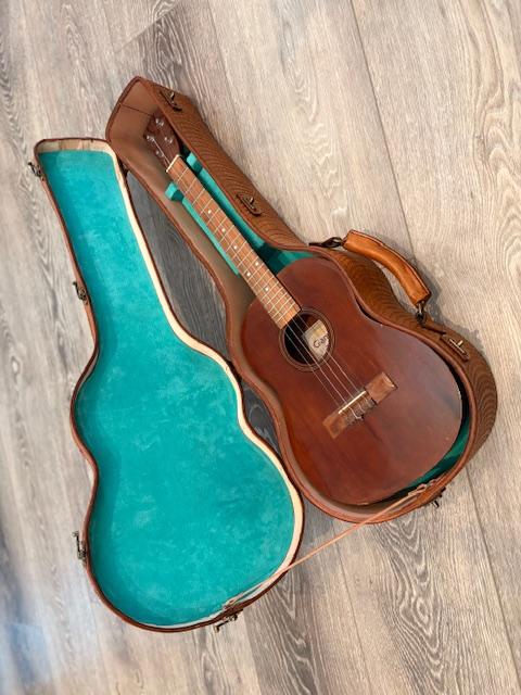 Members kurtalderson Posted 4 hours ago Members Report Posted 4 hours ago I'm getting ready to go back to work again after a break and would like to show off this ukulele case. Perfection it is not, but labor of love it is. Like many loves, it looks terrific as long as the magnifying glass stays in your pocket. Al Stohlman's instruction on making a guitar was used for this. I even visited Tandy's leatherwork museum in Dallas the see the master's work. All in all, I think the project stacks up well. The front carving is from a photo I took in the Arizona's Superstition Mountains of Weaver's Needle. The back carving is a self-portrait done by my brother, Tony Alderson, who loved to hike "the supes". He's been gone about 25 years and the baritone uke belonged to him. It took me almost 4 years to finish this case, what with going off to work and carrying on, so this feels like a milestone in leather work. Quote