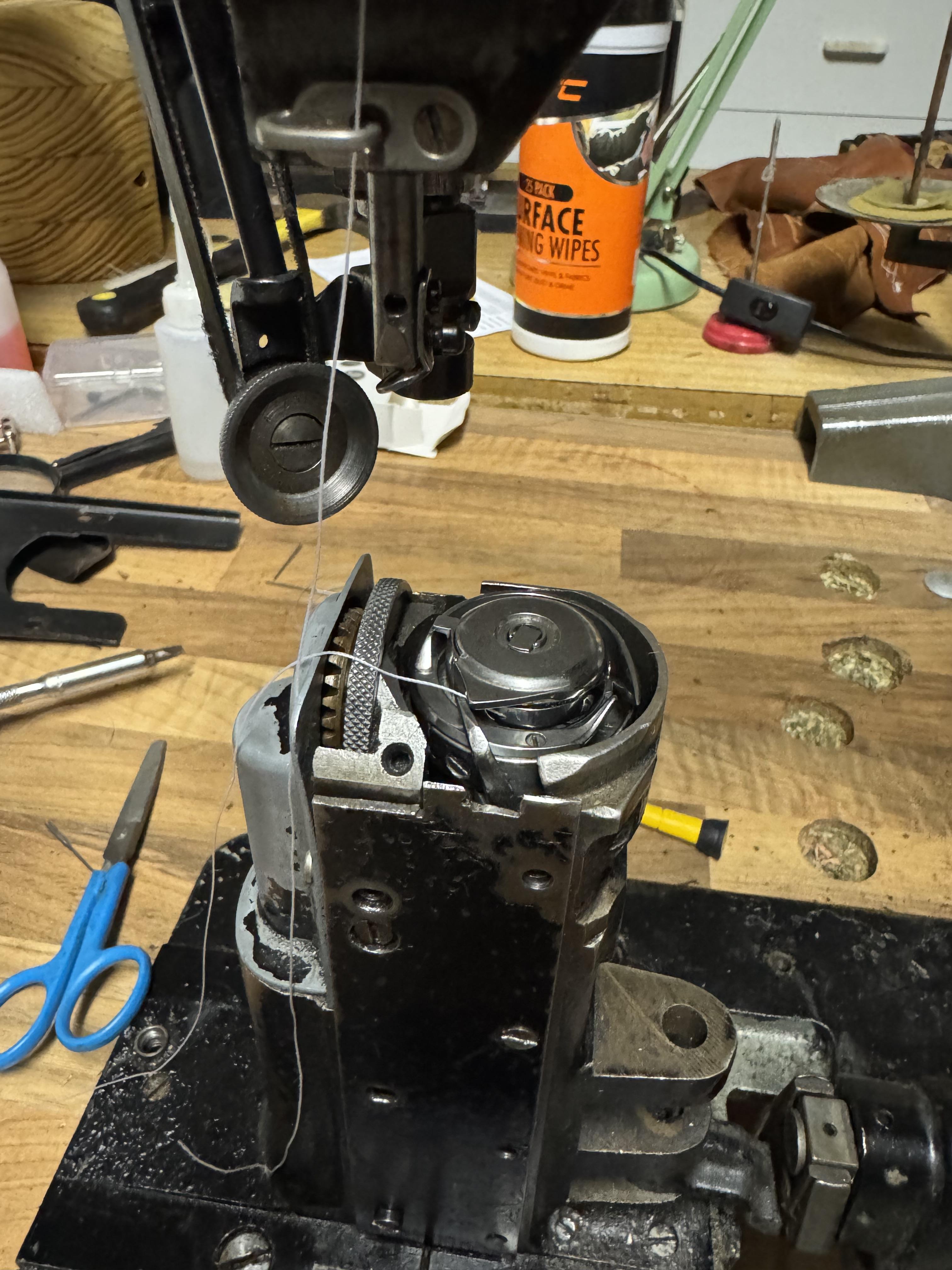 Members Rogueshoemaking Posted 2 hours ago Members Report Posted 2 hours ago (edited) My name is Plunkett Based outside Brisbane, Queensland, Australia. I have a Singer 236G131 post bed used all my needles including the last one. I know big mistake unfortunately, and ordered more, the previous needles where Schmitz, and the new needles are Groz-Beckert. For the love of me, I’ve spent the last two days trying to fix something that probably wasn’t broke, but I thought the timing wasn’t right, because I was sewing nearly medium leather last with it, and it was fairly soft Chrome Excel. But due to it not working, I adjusted the needle bar, then I adjusted the bobbin case to make it closer to the needle, by loosening two screws from underneath. Still can’t get this needle to pick up the tread from the boobin, using the servo. It will pick it up when I do it by hand, the first time, and it will continue for five or six stitches , then I press the foot peddle, and no luck, just punches holes. I don’t know anything about needles, and wouldn’t know where to cross reference if they are the same. But somethings not right, and it might be the needles. ( gut feeling : no evidence ) I have attached pictures of the needles. Can anyone give me any advice, or help point me in any way. Edited 20 minutes ago by Rogueshoemaking Quote