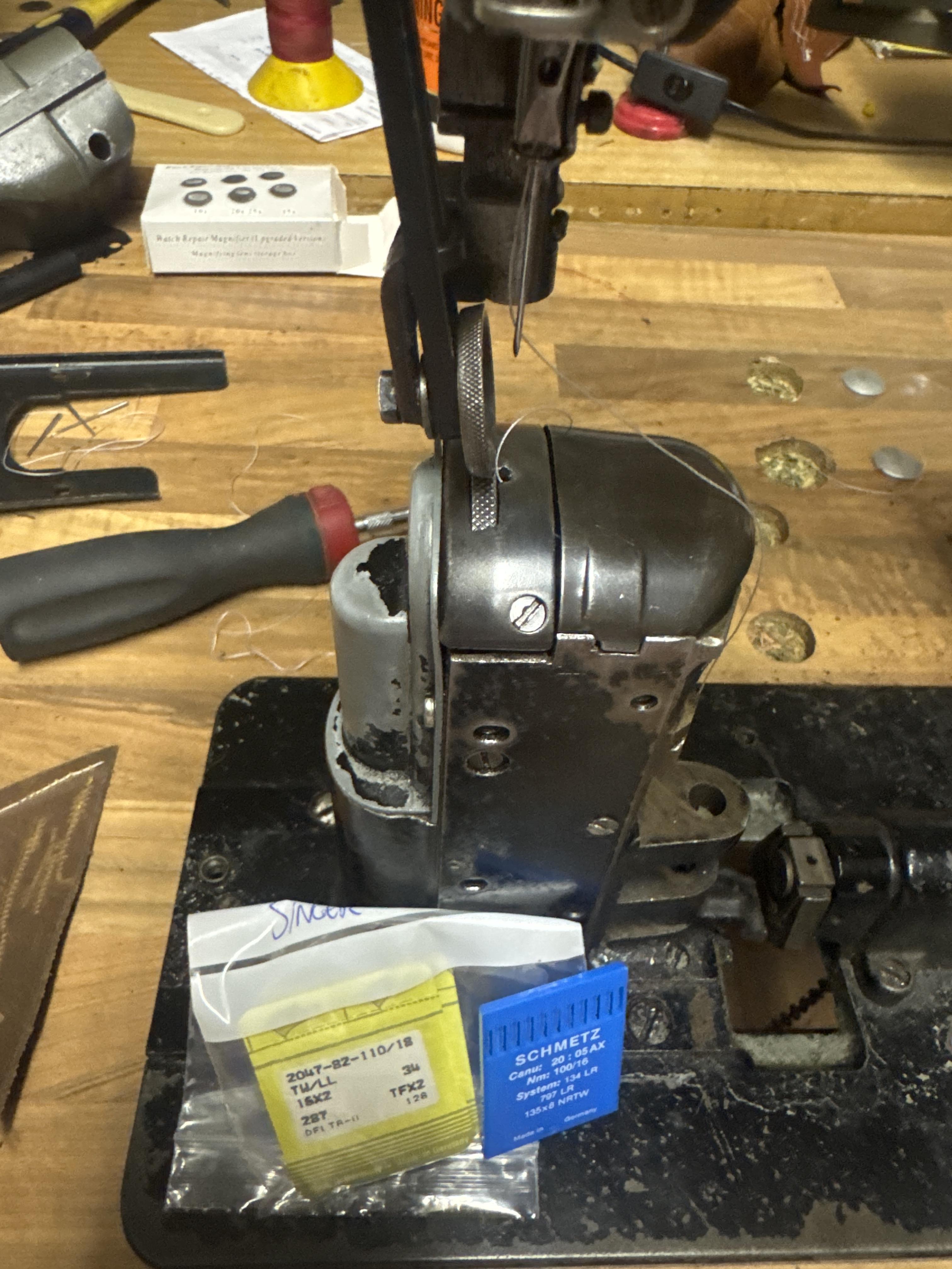 Members Rogueshoemaking Posted 3 hours ago Author Members Report Posted 3 hours ago Where would I find an engineers report to set the needle bar height to its correct position, I know the hook has to sit 1/8 above the eye of the needle, so 3.38mm. But does it change things if the needle bar is out of whack, can I just move it down to the correct height, below the hook, and everything else should work accordingly. I have the 134 LR needle back in. it can’t be the tension, and I’m running out of time to get this project done. Just now, Rogueshoemaking said: Where would I find an engineers report to set the needle bar height to its correct position, I know the hook has to sit 1/8 above the eye of the needle, so 3.38mm. But does it change things if the needle bar is out of whack, can I just move it down to the correct height, below the hook, and everything else should work accordingly. I have the 134 LR needle back in. it can’t be the tension, and I’m running out of time to get this project done. Quote