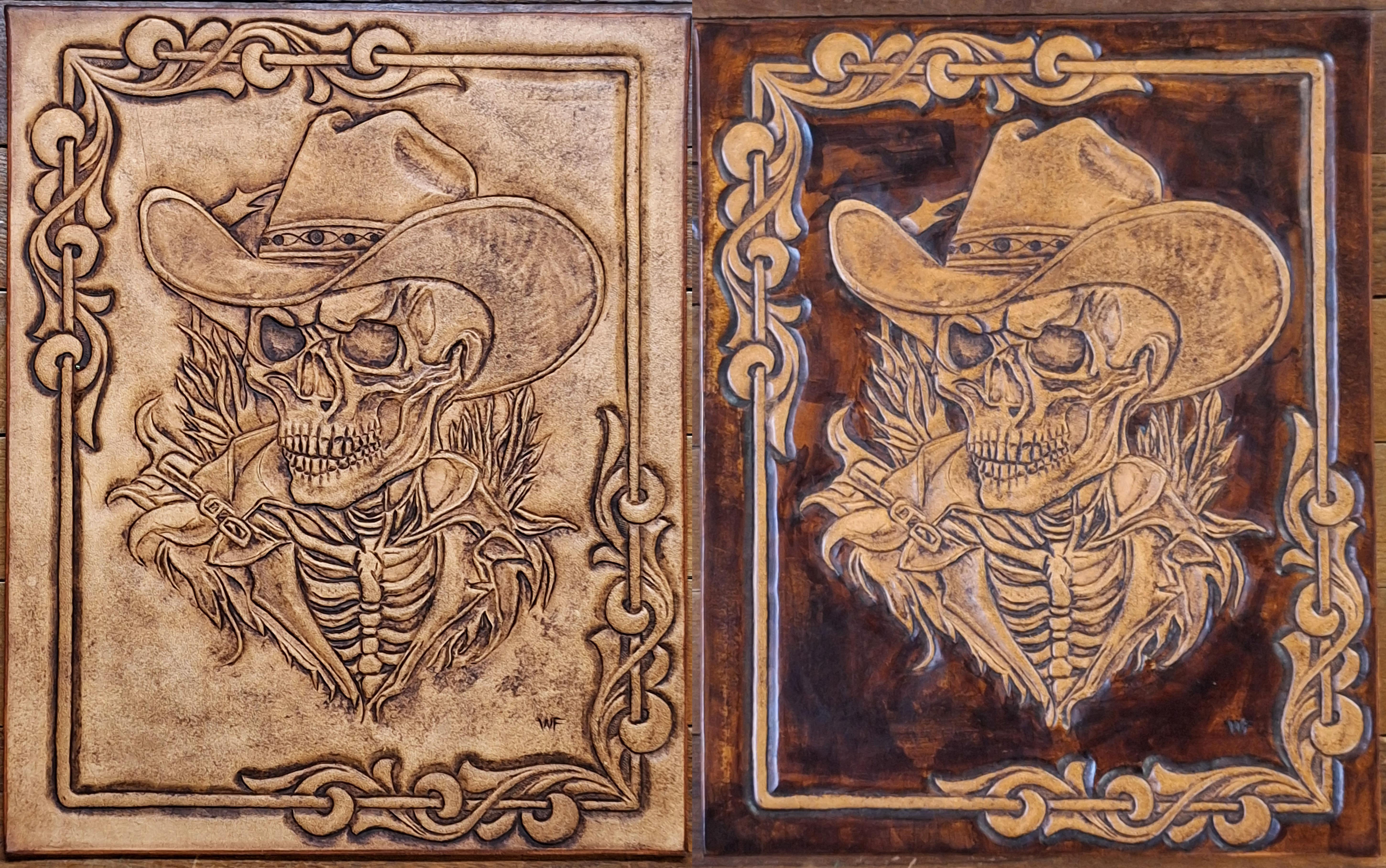 Wanted to try a building, The Alamo seemed like a good project. It was more difficult than anticipated, larger size would make it easier. The size was 7.5 x 10, seemed big enough when printing the piece, plus it is hard to find a lot bigger piece on a belly. With the price of bellies it gives me more freedom to try and not be afraid of the cost of failure, just have to read the leather for proper moisture content.