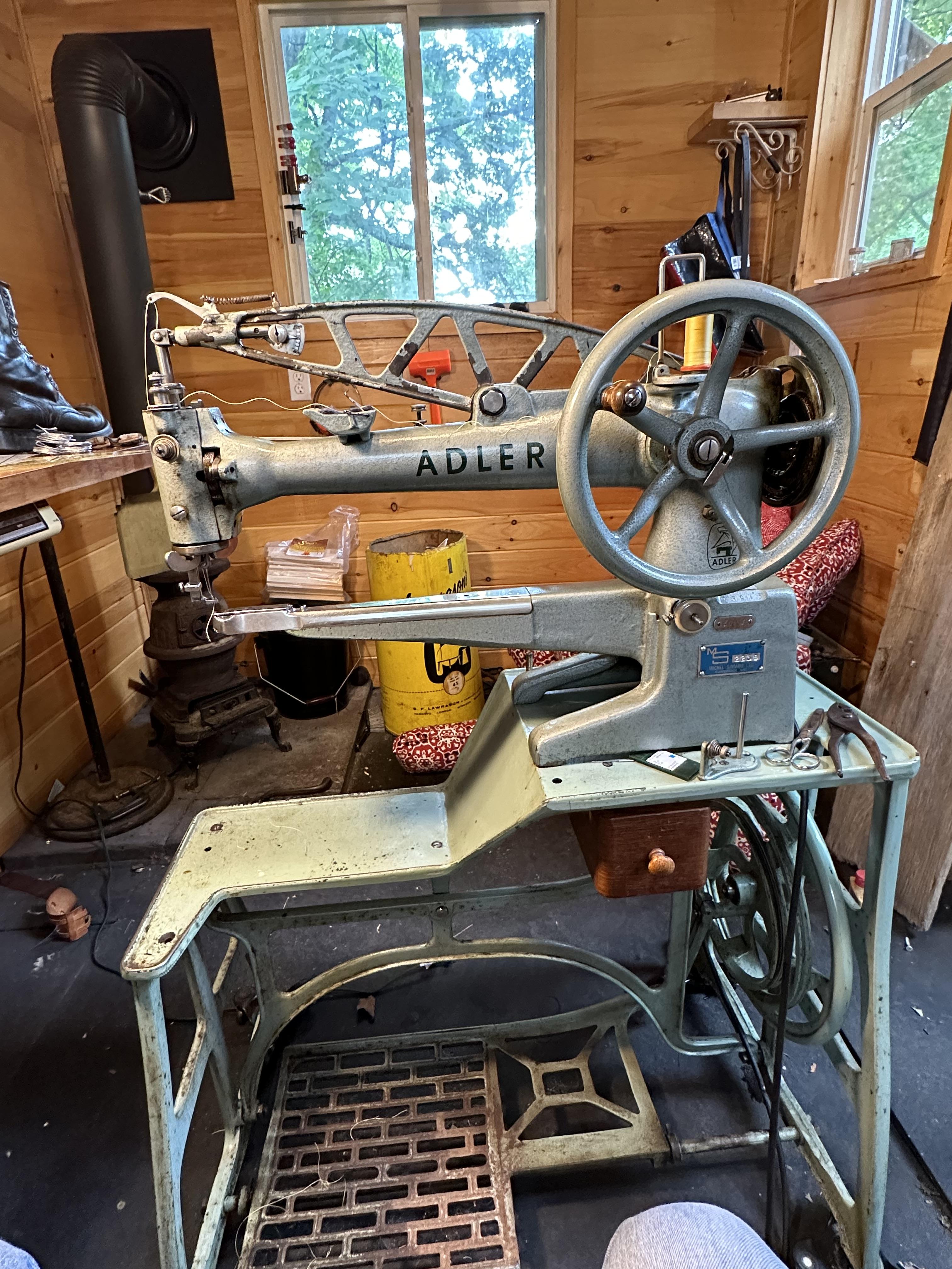 Members Duracuir1 Posted 44 minutes ago Members Report Posted 44 minutes ago (edited) Hi from Ontario Canada. As a teenager in the mid 80s I worked in shoe repair. I would spend entire days patching hockey gloves with an Adler 30. About 15 years ago I started buying some equipment. I bought leather, machines and hand tools from the estate of an Italian shoe maker. This became a fun hobby and I was a frequent visitor to this site. In 2022 I retired after 33 years as a police officer. I joined some time ago and tried to introduce myself before but my photos could not upload. About half of my selected photos for this post also failed, but you’ll see a few. My little shop is set up in an old Livery Stables building that we bought five years ago. I brought mostly old equipment but use pretty much all of it. I do repairs, some custom work and make lots of belts. Prior to having my shop I catered mostly to watch collectors. I still do on occasion but have mostly moved on from making watch straps. Local work and repairs is much simpler. I have two old Singer 29s that handle a lot of my needs. One is usually threaded in black and the other in tan or brown. I keep it simple… I use Coats Extra Strong thread in small spools available at Michael’s or Fabricland. I have an Adler 30 and it’s at home. Works so well. I have an old stitching horse and enjoy hand stitching. It is very relaxing and my eyes still work. The old horse works much better for me than the modern stitching pony with a wing nut that would capture my thread most of the time. For heavy work (holsters, sheaths, saddle bags and repairs) I have a Cowboy Outlaw. I considered an electric cylinder bed machine but my workload is minimal and I am trying to keep an old school look and experience for my guests. Here’s hoping some photos of my shop will appear in my post. You have a wonderful website with lots of experience. Thank you for this site. Edited 39 minutes ago by Duracuir1 Spelling. Quote