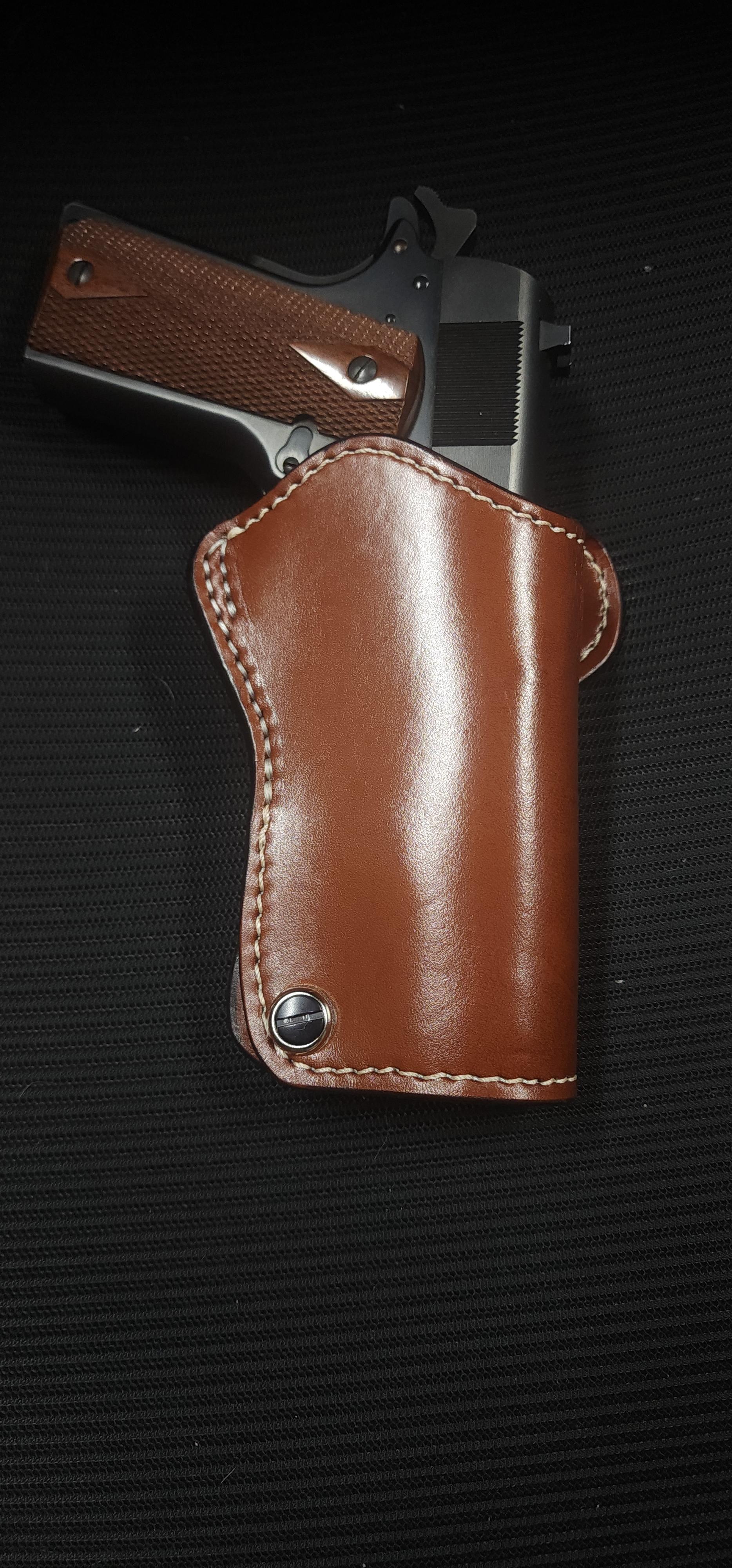 Members Stetson912 Posted 37 minutes ago Members Report Posted 37 minutes ago I went down this rabbit hole, it was fun. I need to order better hardware but you get the point. The 1at by milt sparks has an oddly shaped adjustable welt that adjusts tension. This is for a 5" 1911. It is a behemoth with the body being 2 layers of 6/7 oz and the welt is 4 layers for a total of 8 at the thickest part (about.75" thick). It also has sewn in sight rails that was interesting. I sewed them to the liner so you cant see them on the front. Im not a fan of hand stitching that welt either, but we do what is necessary haha. Quote